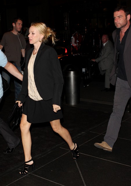 Star-studded attendance last night on The Dark Knight black carpet including Gary Oldman and Aaron Eckhart – both quivering! – and also Naomi Watts who arrived with boyfriend and baby-father Liev Schreiber though both slipped inside right away.