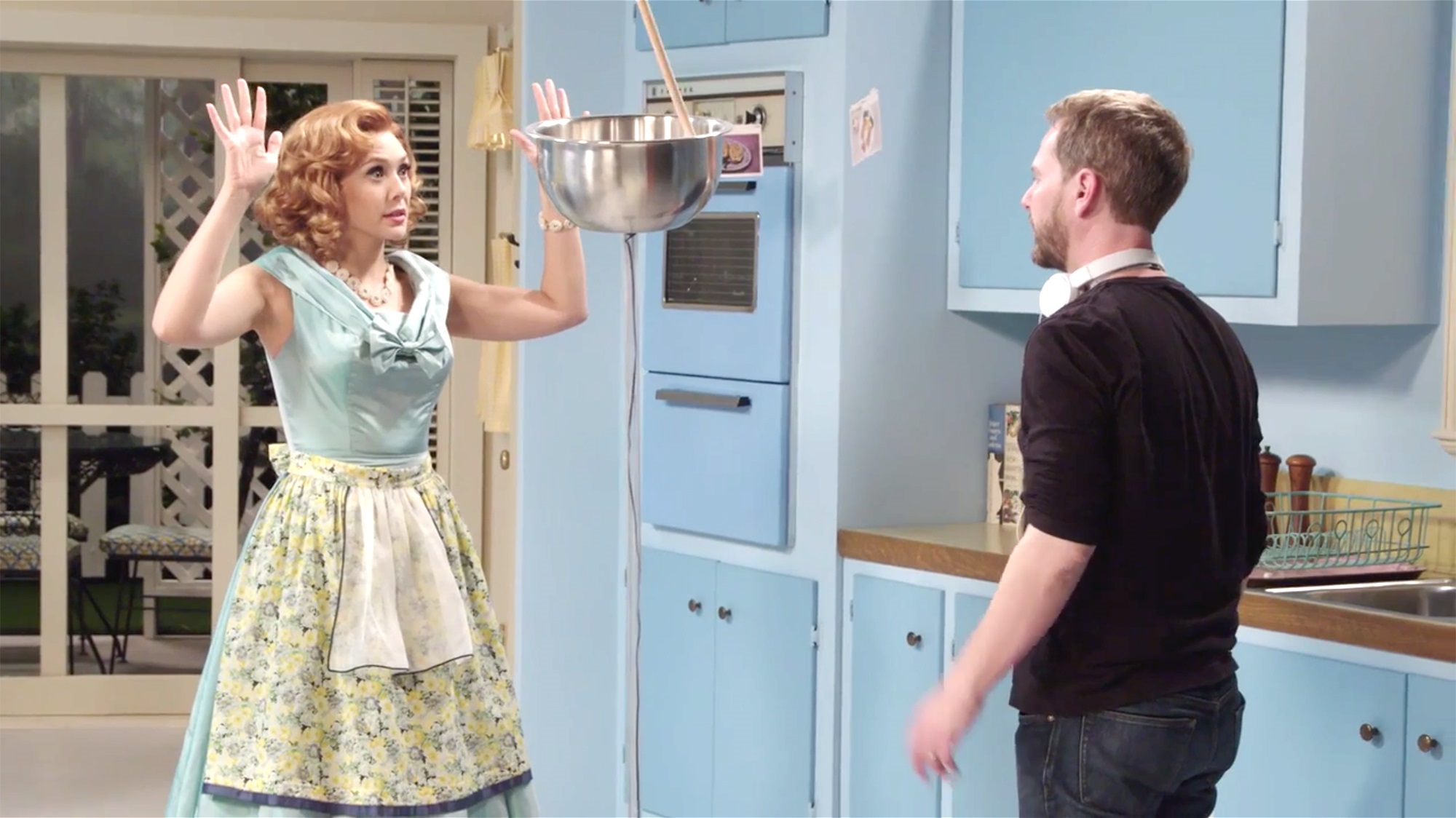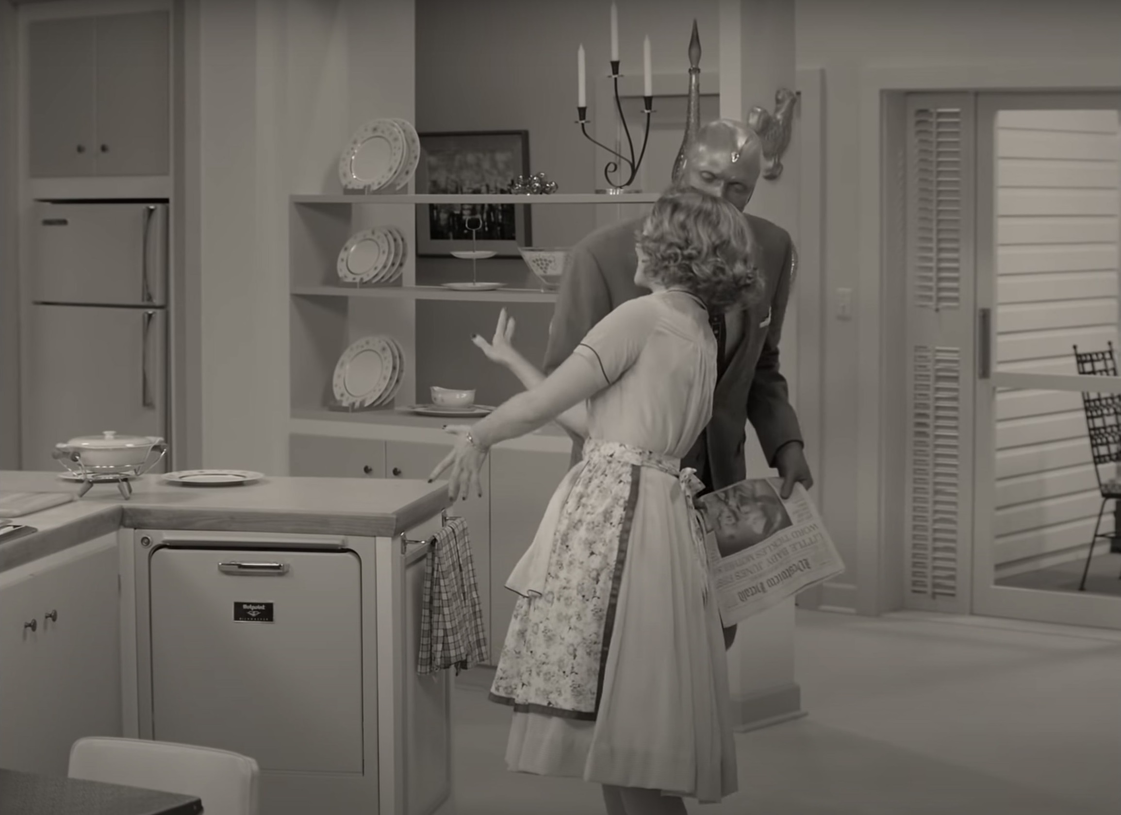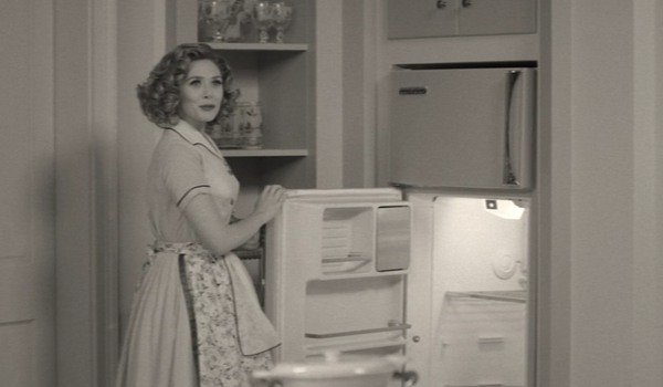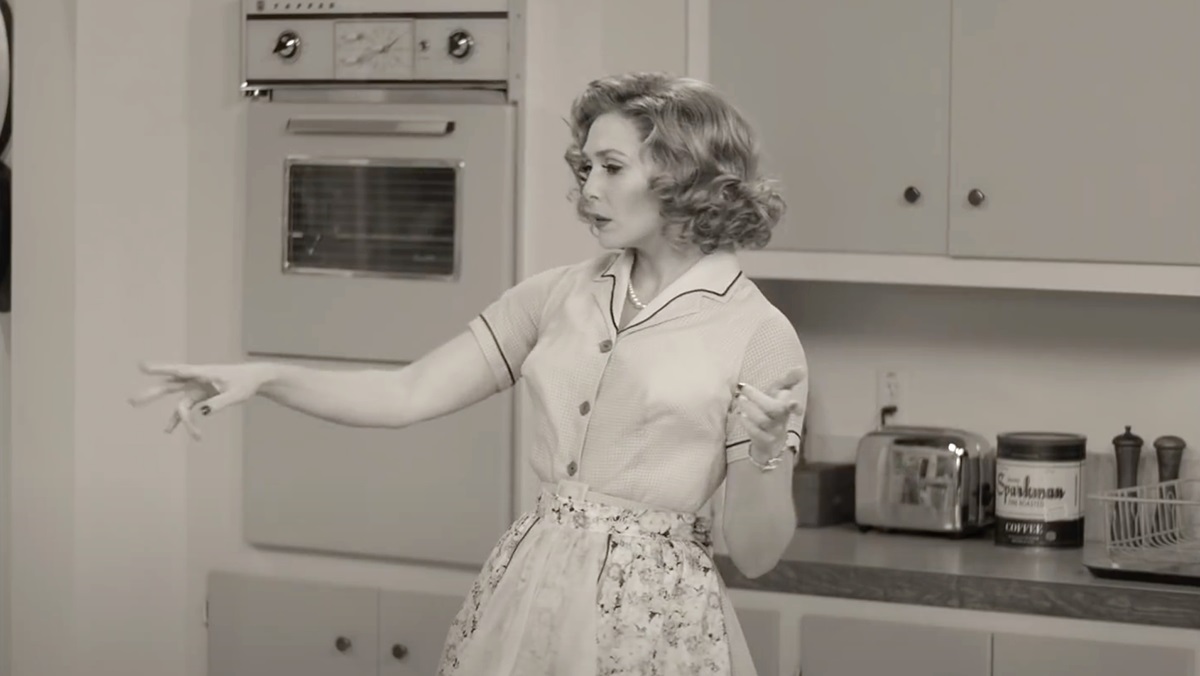 I am, thus far, a bit frustrated with WandaVision. We are now three episodes in and the central conceit—Wanda and Vision are settling down in suburbia, but Something Is Wrong—has not advanced since episode one. Sure, things happen, but the things that happen are just reinforcing the central conceit we learned within the first 20 minutes of the show. The slow start continues. But! This week we’re not here to pick apart what is and isn’t working in WandaVision, we’re here to celebrate one pure, utterly enjoyable element of the show: the kitchen set. Kitchens are a core component of most sitcom sets, and WandaVision is no different. In the first two episodes, Wanda and Vision’s new home has a gleaming, cutting-edge kitchen with a fridge/freezer, a wall-mounted oven, countertop range, and under-cabinet dishwasher. These would all be the latest and greatest appliances in the 1950s/60s, and I, for one, am DEEPLY JEALOUS of Wanda’s kitchen.