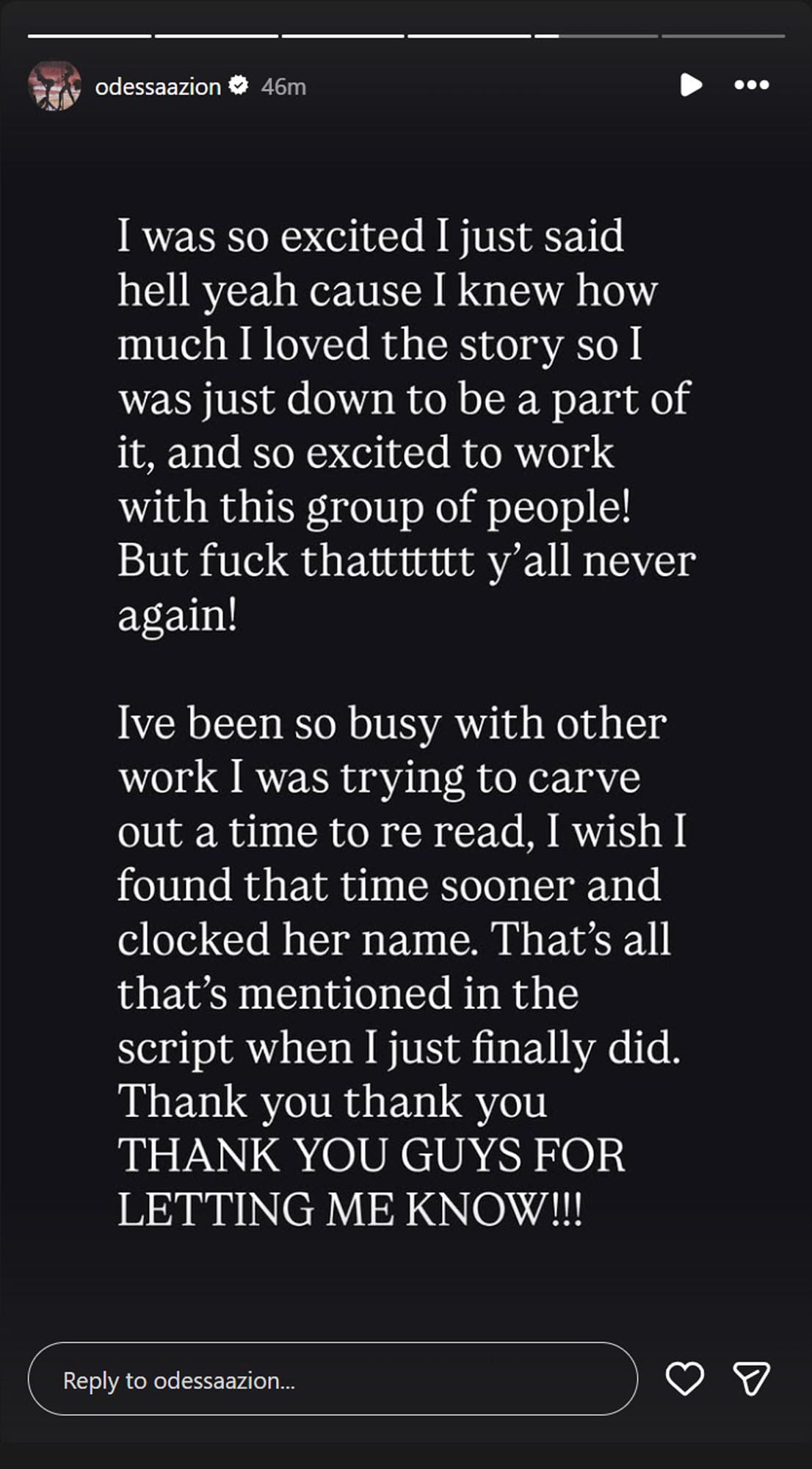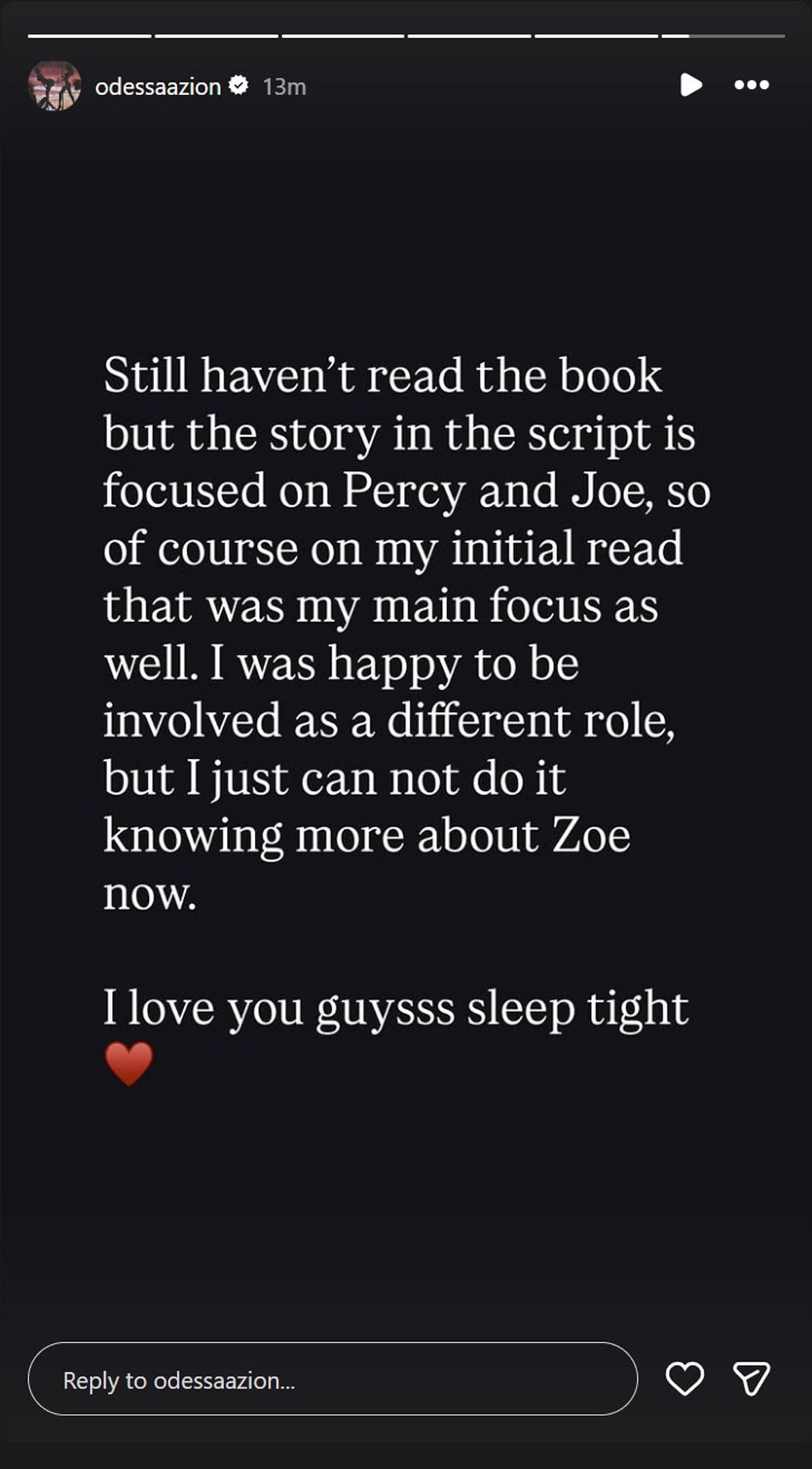 Odessa A'Zion's Instagram story