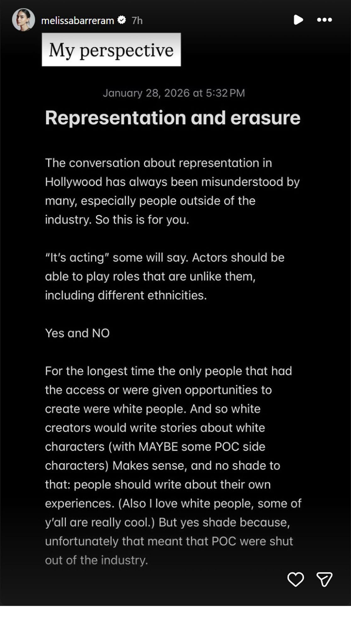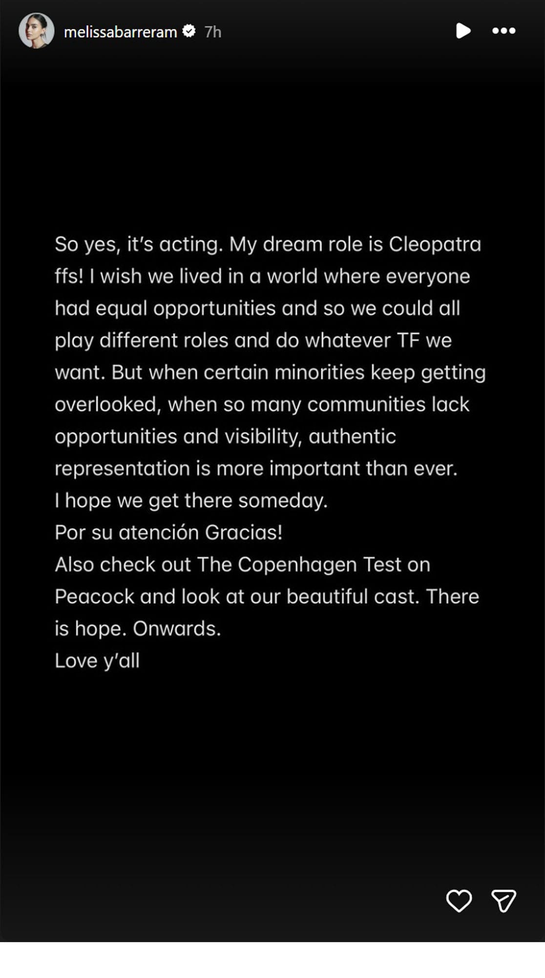 Melissa Barrera's Instagram story