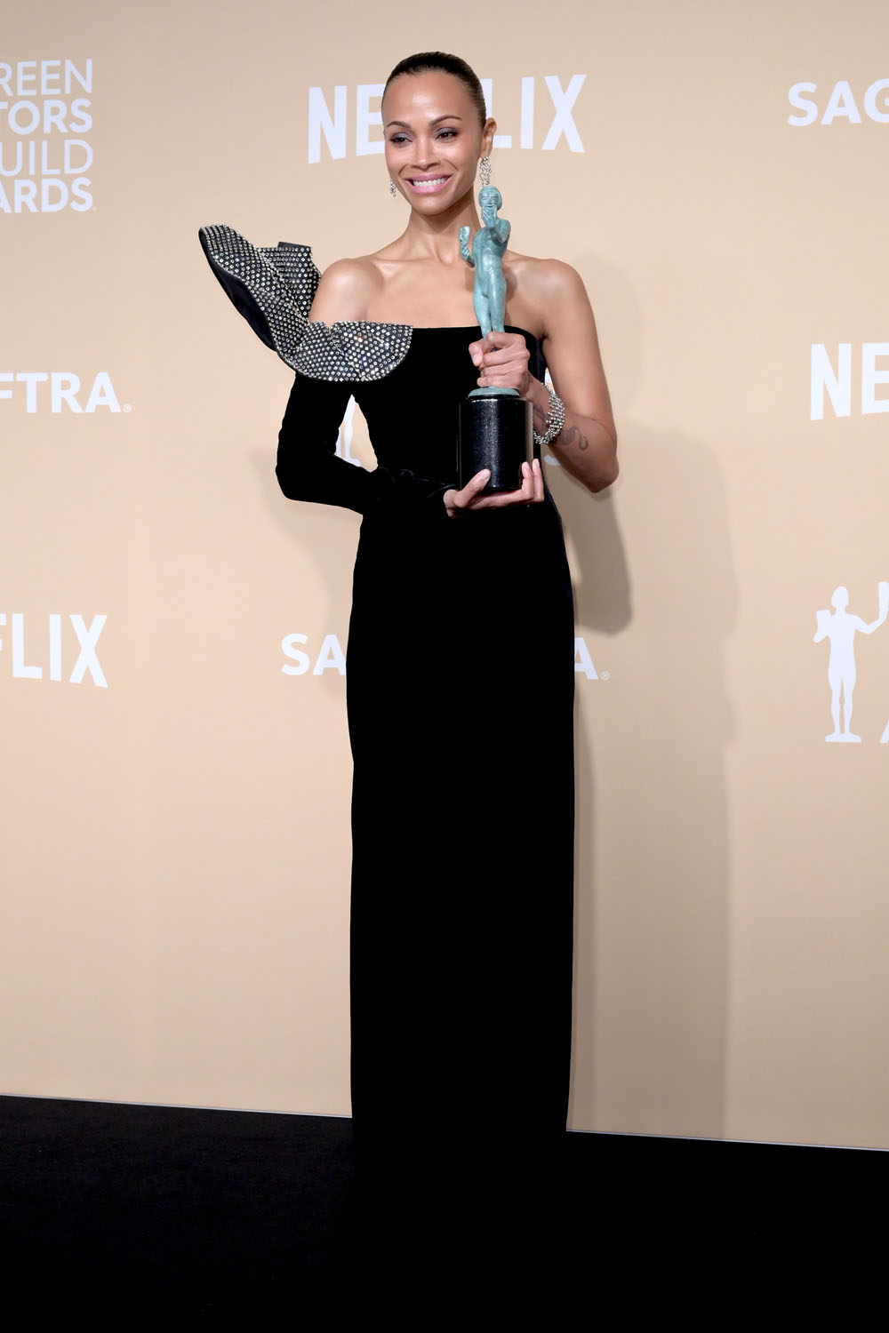 That’s not her only streak though. This streak of looks, holy sh-t! She and Brad Goreski have served banger after banger. For the SAGs it was custom Bottega – panelled black leather dropping to a pleated tiered lower half…