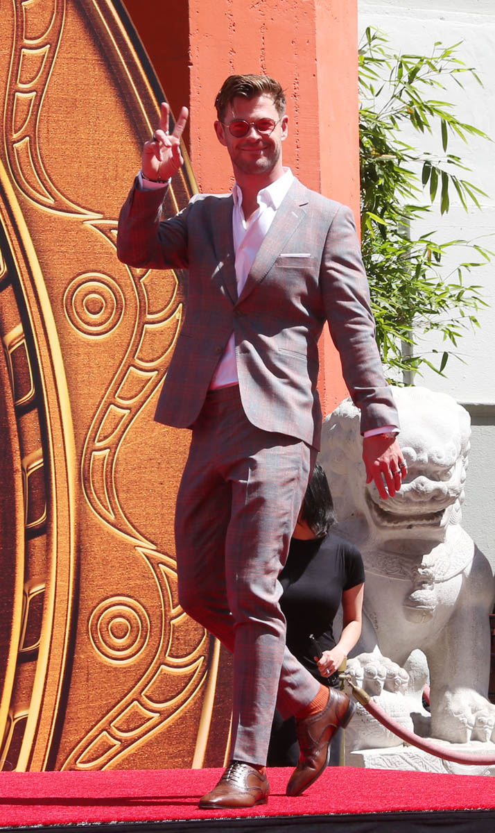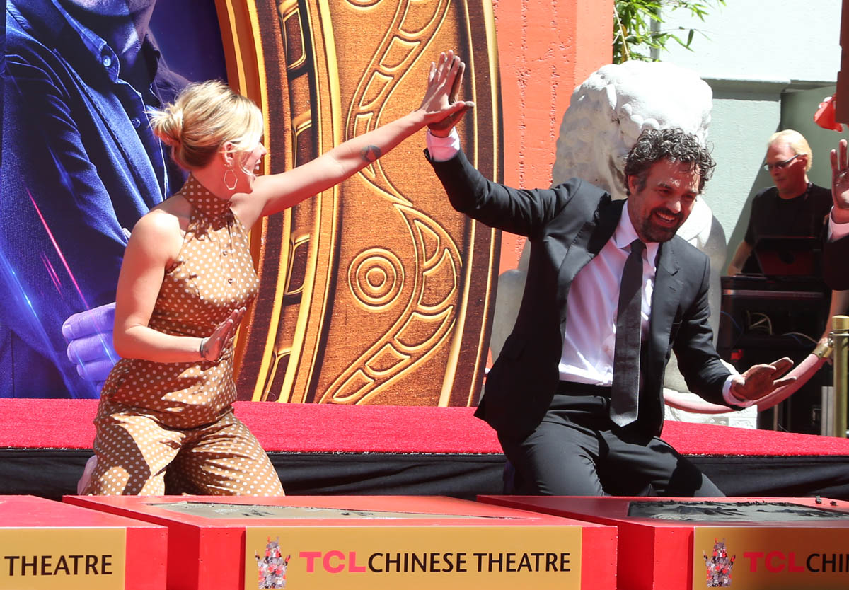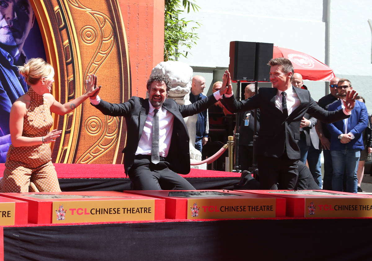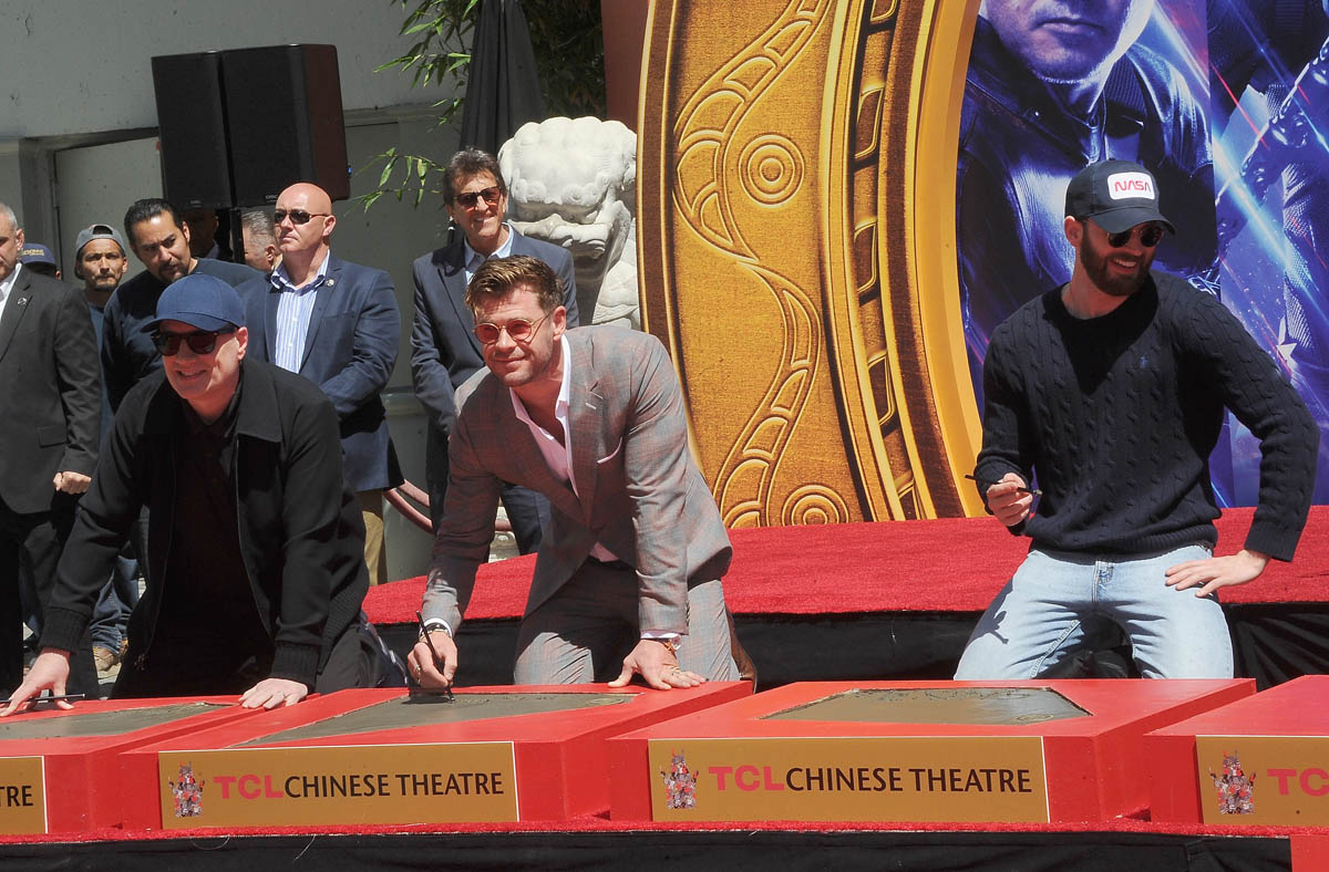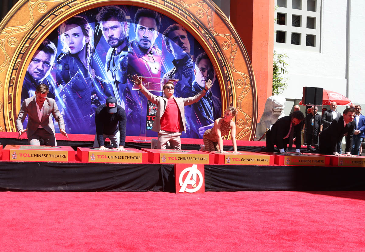 But before they go, the OG Avengers are making their mark, literally, getting a hand-and-footprint ceremony at Grauman’s Chinese theater, where so many Hollywood legends are consecrated in concrete. Chris Evans, RDJ, Scarlett Johansson, Jeremy Renner, Chris Hemsworth, and Mark Ruffalo, along with Marvel president Kevin Feige, left their prints and signatures in concrete at the theater yesterday. I am surprised at how emotional I am getting at the farewell vibe of this Endgame press tour. I asked an older cousin if he felt this way when the original Star Wars trilogy ended and he said no, mostly because there wasn’t the constant media presence of the stars to reiterate what a finale it was.