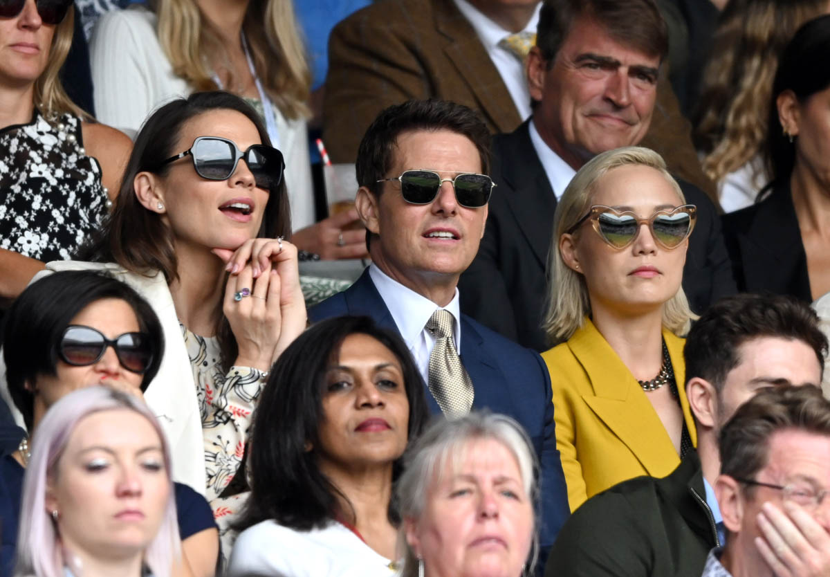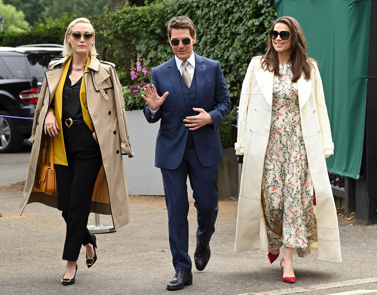 Now…we don’t exactly know who Tom hangs out, other than, um, Scientology people. And Hayley Atwell and Pom Klementieff, I guess? The rumours about Tom and Hayley have been happening since they started shooting together. Had they attended Wimbledon alone, without Pom, it would for sure have fueled more speculation. I really hope Pom wasn’t just there to offset that attention and still, most of the photos published of them at the match crop out Pom and focus instead of just Tom and Hayley. If they are a thing, Tom’s keeping it undercover for a change, which would be a gear change, obviously, from what he’s done in the past. That said, in the past, whenever he had a girlfriend, she was paraded around like a trophy. Is that no longer the move now? Or is it not a move because she’s not his girlfriend?