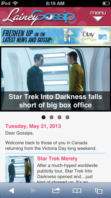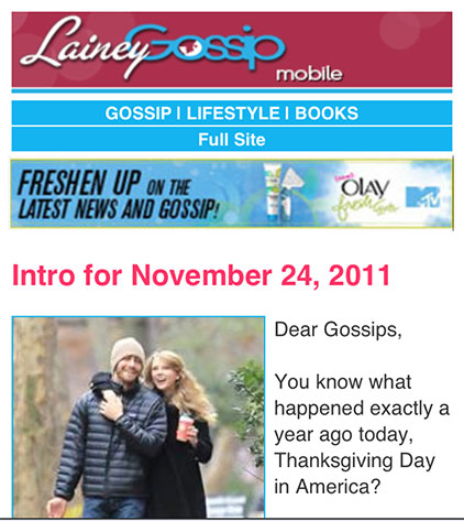 - Once you've done that, open a fresh browser window and just go to www.laineygossip.com with no ‘/mobile’ after it. Your browser will render the new mobile site