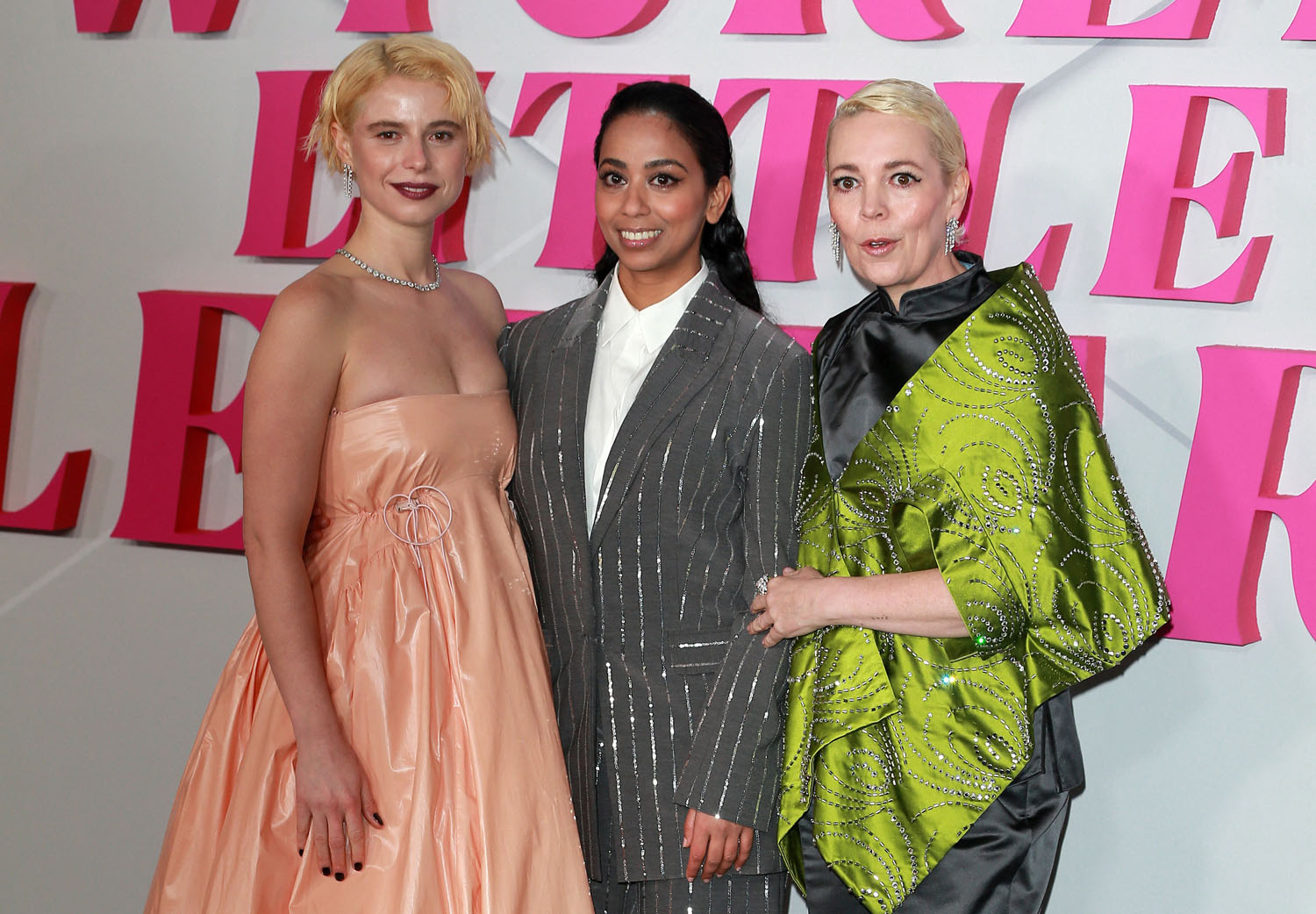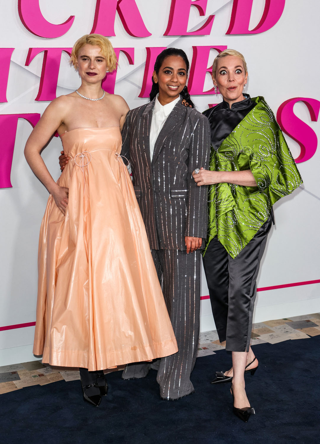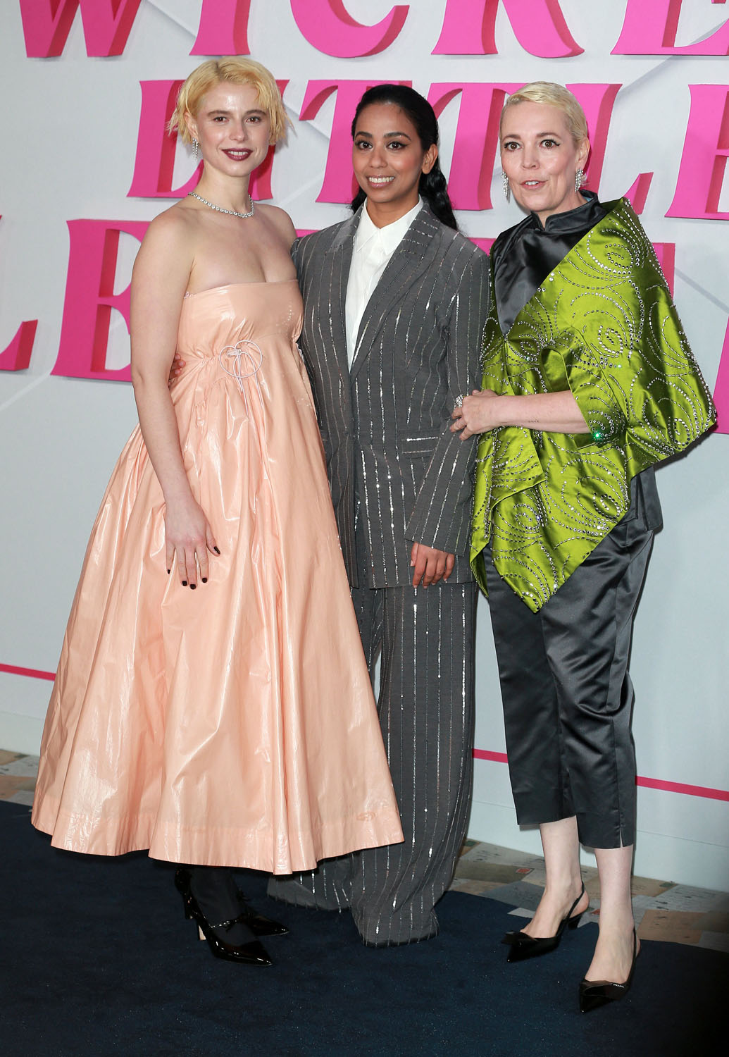 Olivia Colman, Anjana Vasan, and Jessie Buckley were at the premiere last night of Wicked Little Letters. And before we get to Olivia’s hair, let’s talk about this film and how much I wish we could all gather in a theatre together and watch it and scream with laughter.