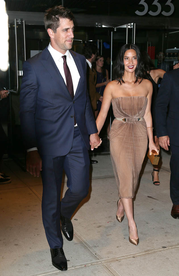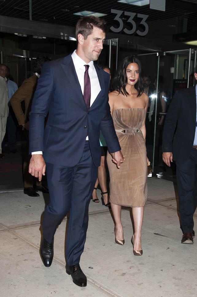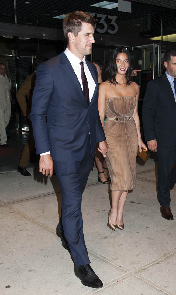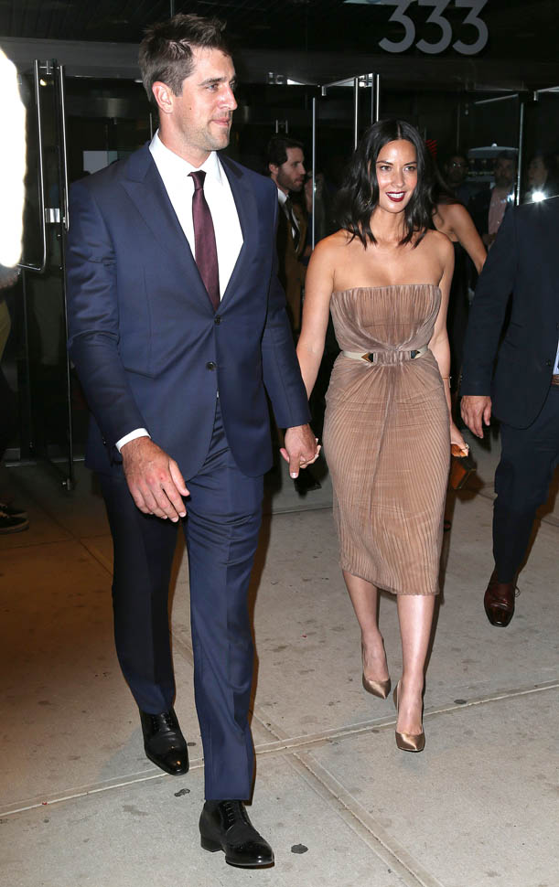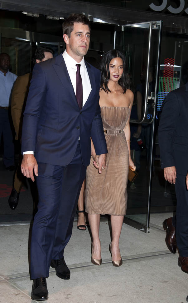 Olivia Munn was at the premiere of Deliver Us From Evil last night. And Aaron Rodgers was there with her. Their first official Hollywood event as a couple. They were at the Academy of Country Music Awards together as presenters in April…but that was before they hooked up, just.