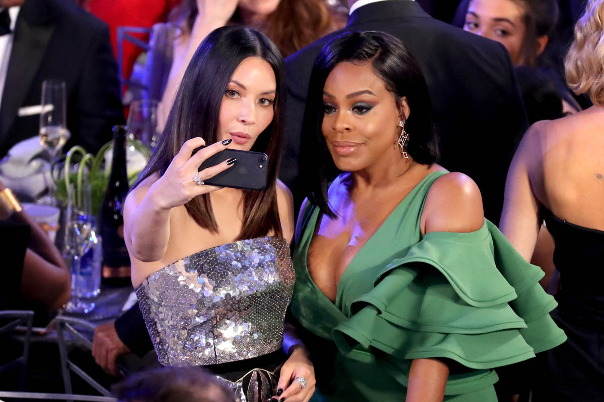 Two weeks ago at the Critics’ Choice Awards, Olivia Munn (who hosted) did a bit with Niecy Nash calling out Hollywood predators and also Mark Wahlberg. I was into it. And I was into the repeat performance last night when they co-presented at the SAGs, making a point that there were no Asian nominees in the Best Actor in a Drama Series category. Is this a regular thing? Niecy + Olivia? Can it be? As I noted in that post about Olivia after Critics’ Choice, it feels like something is happening with Olivia right now. Some momentum. And when momentum builds, the gossip does too.