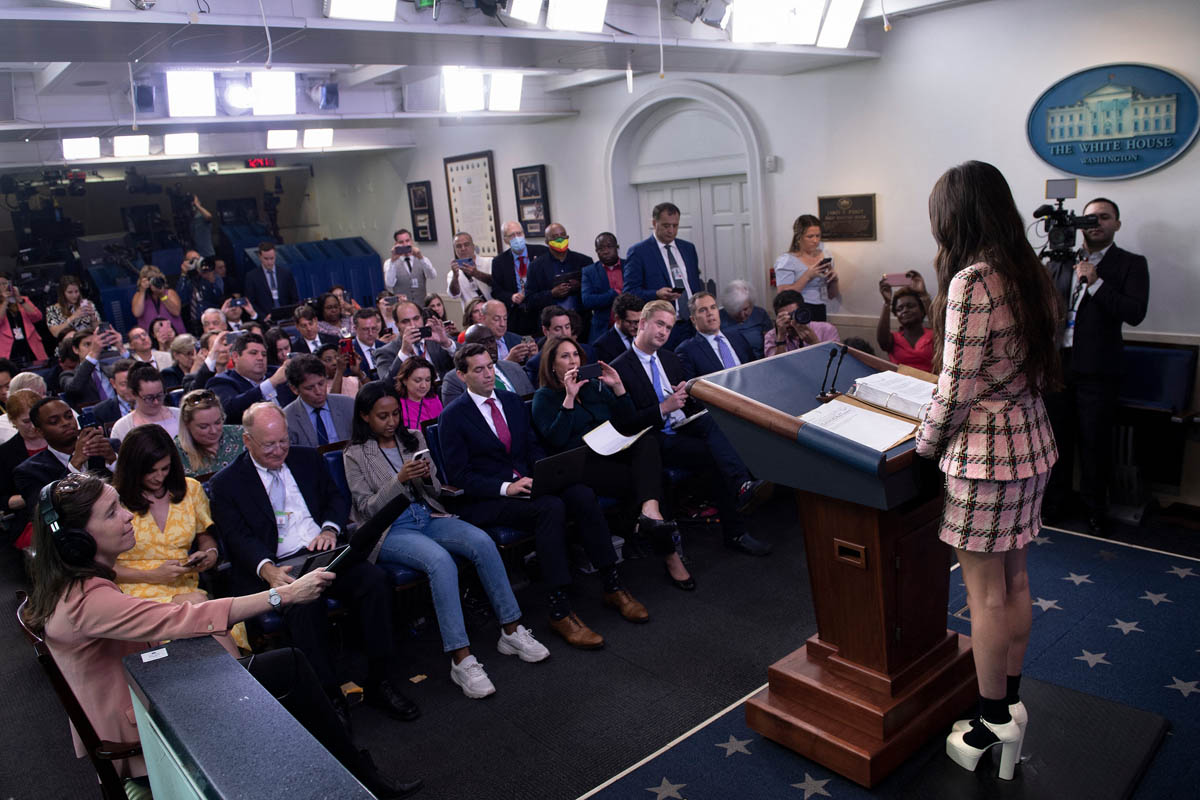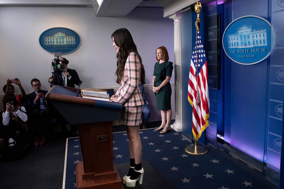 She also made an appearance at the lunchtime press briefing, but for me, the event started when she walked up the driveway at 1600 Pennsylvania Avenue in a pink tartan, Chanel jacket and skirt set, circa 1995. A power suit, because in this situation she has the platform, influence, and cool factor, and the administration wants every ounce of it. It’s a perfect styling choice for Olivia because her 90s alt-pop aesthetic is elevated for the business attire brief instead of being muted to conform to a Washington, DC room full of black and navy.
