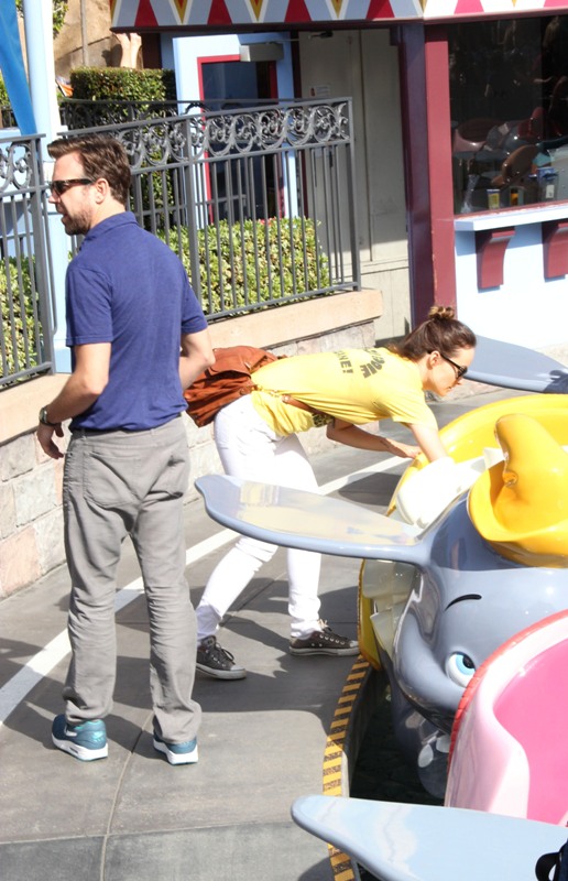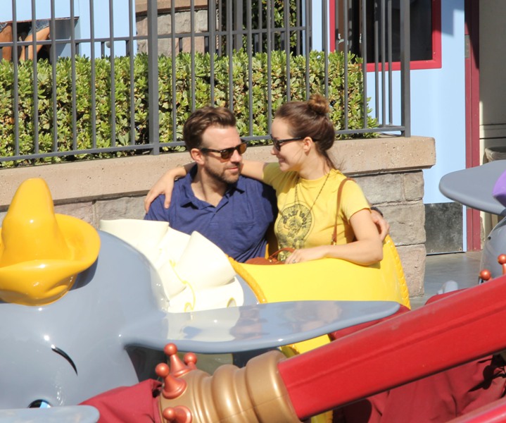 Anyway, here are Olivia Wilde and Jason Sudeikis at Disneyland yesterday being romantic while sitting in an elephant plane. I could probably walk faster than that elephant plane. This is what I’m talking about.