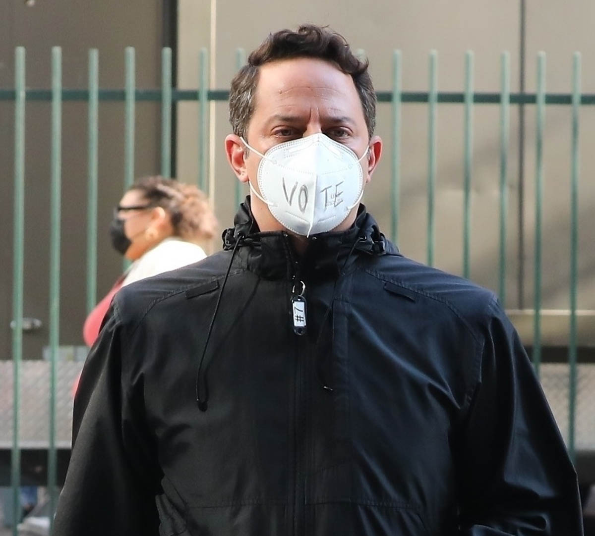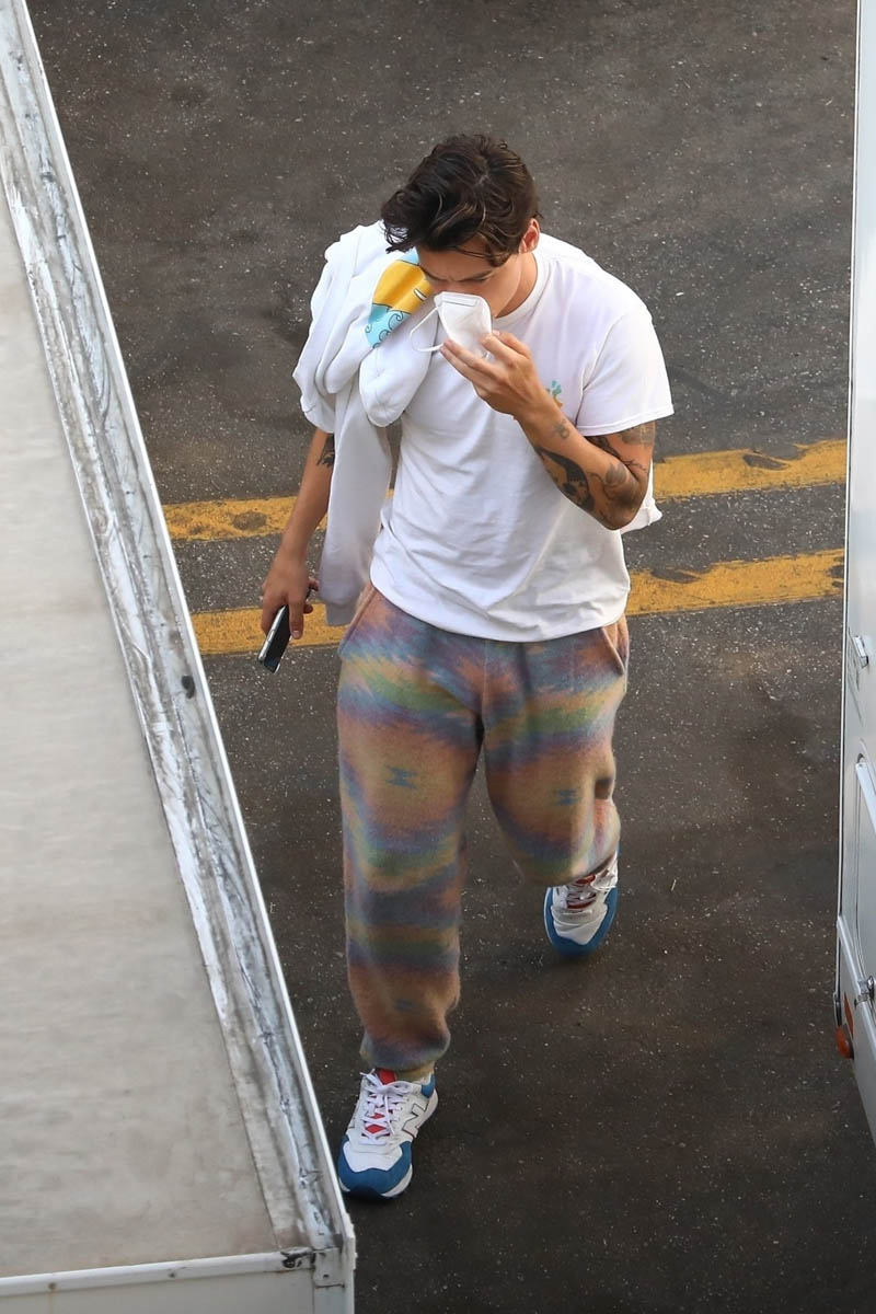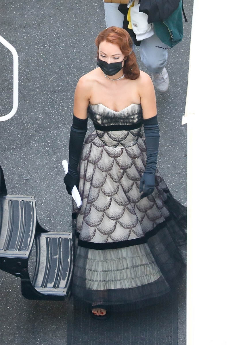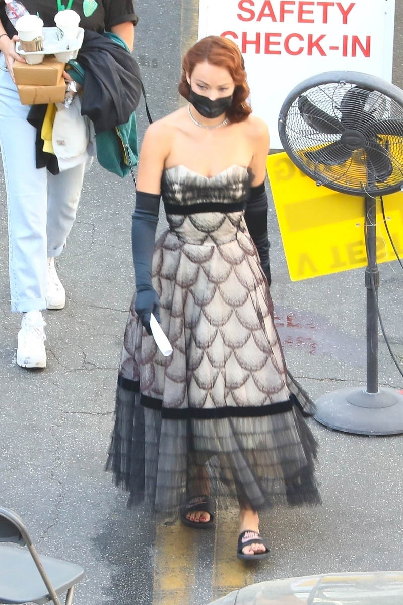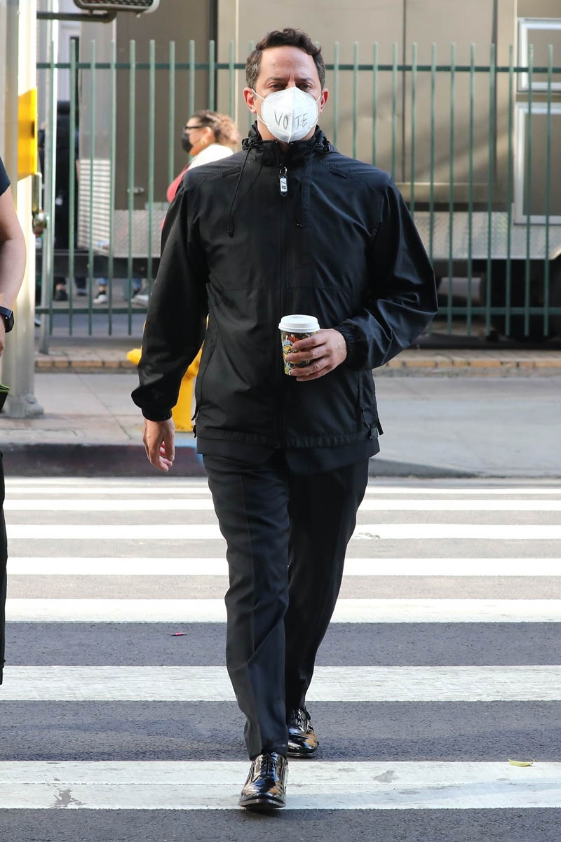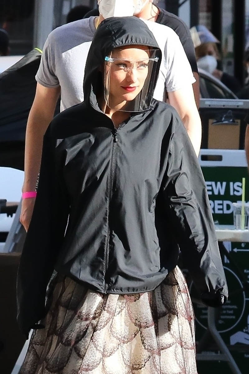 As for these set photos – these are good shots of how productions have incorporated safety protocols. People are masked and gowned and health check stations. And Chris Pine is in one of the trends of the season, wearing a sweater vest. I could see Harry Styles wearing the outfit Chris is wearing too. Harry, however, is wearing a t-shirt with a message so I wonder if he knew he’d be papped. Nick Kroll chose to send the message with his mask.