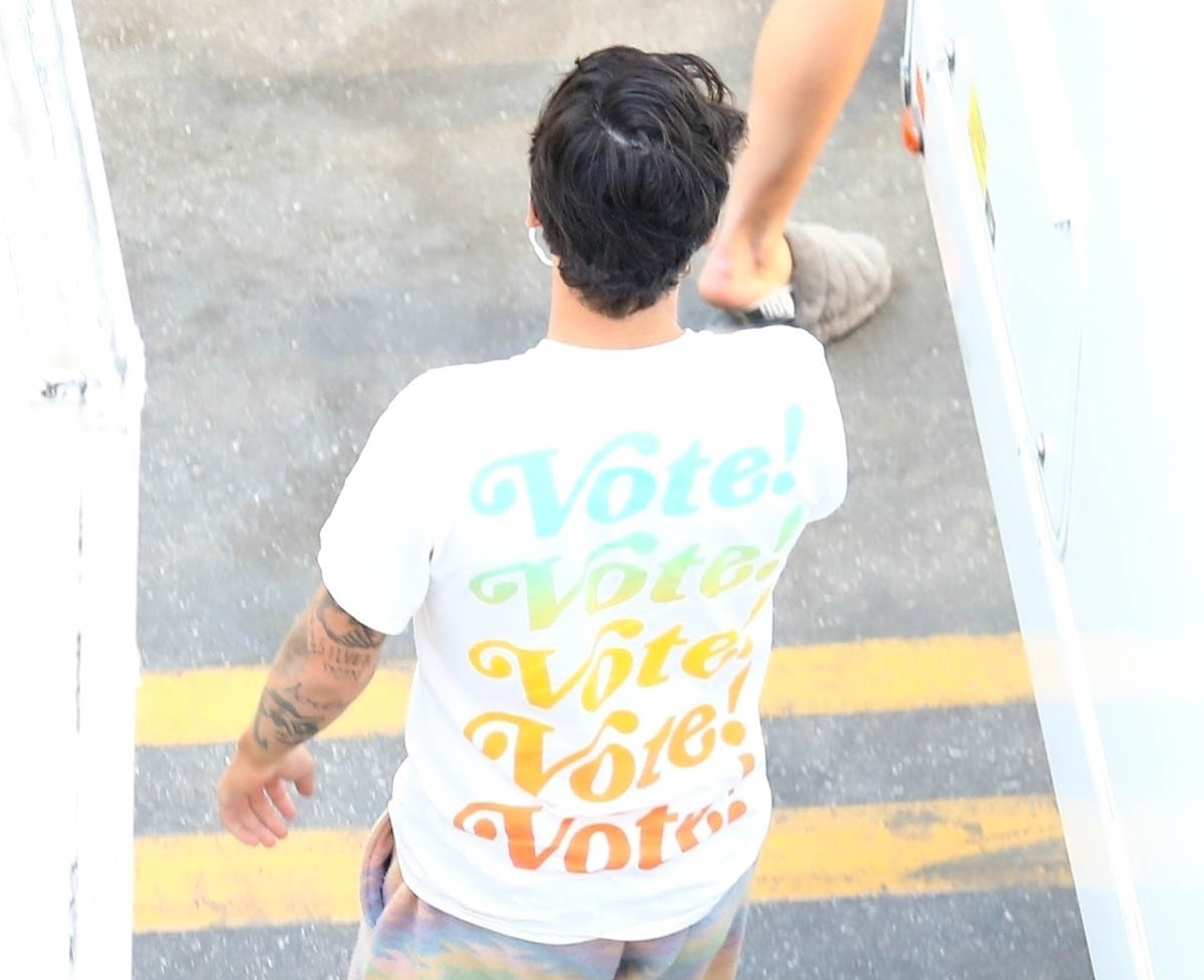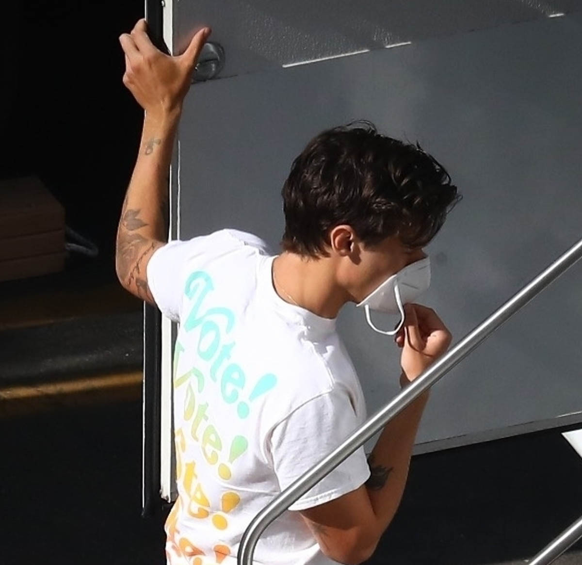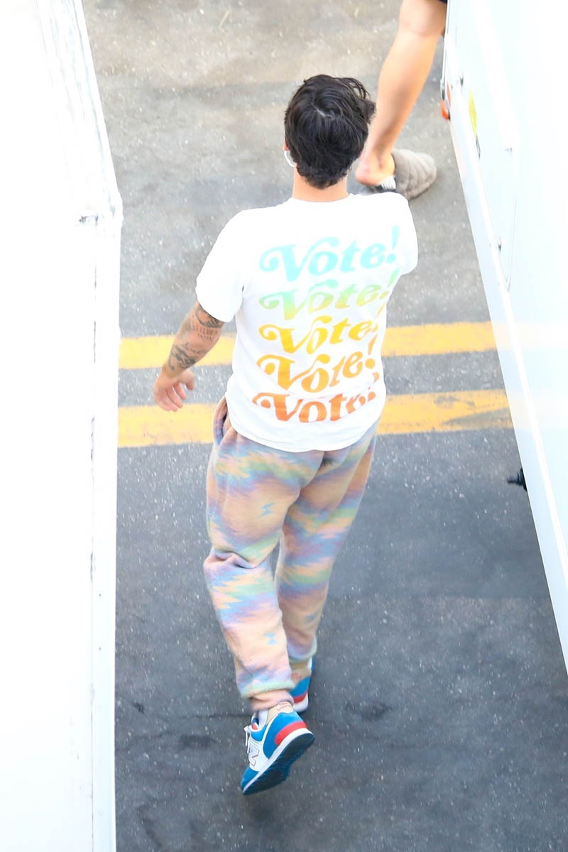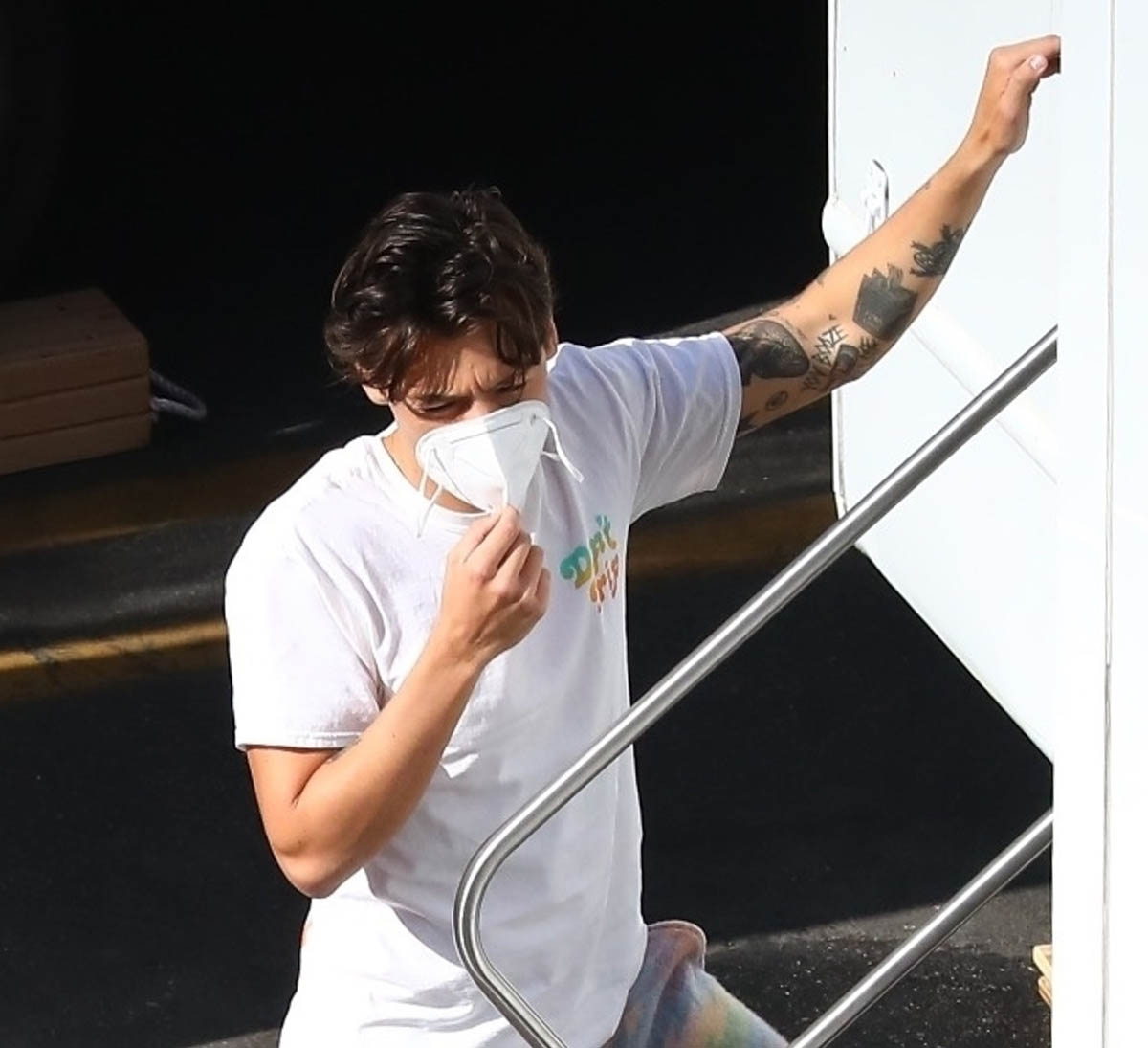 As for these set photos – these are good shots of how productions have incorporated safety protocols. People are masked and gowned and health check stations. And Chris Pine is in one of the trends of the season, wearing a sweater vest. I could see Harry Styles wearing the outfit Chris is wearing too. Harry, however, is wearing a t-shirt with a message so I wonder if he knew he’d be papped. Nick Kroll chose to send the message with his mask.
