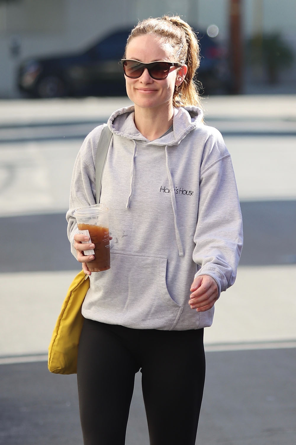 Here's Olivia leaving the gym, knowing that the paps know where to find her, wearing Harry’s merch, and perhaps sending a message.