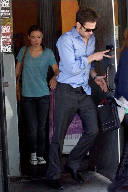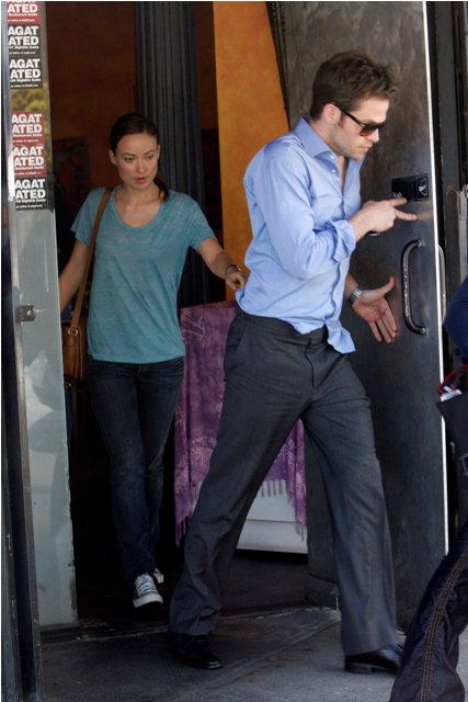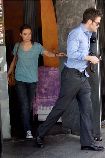 Olivia and Chris worked together on a film earlier this year, just one of what seems like 18 projects she has on the go (this is STILL a mystery), called Welcome to People. These are old photos of the two leaving a restaurant after lunch back in March. I guess now he’s the fifth in her single summer dating circle. Let me rank them for you: