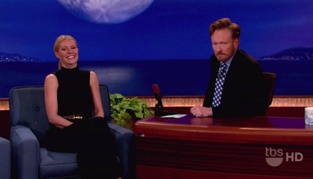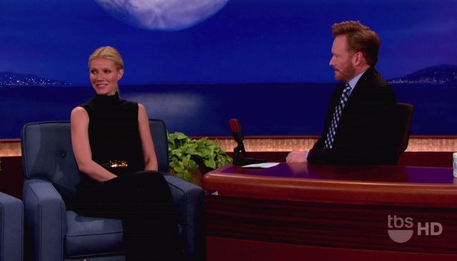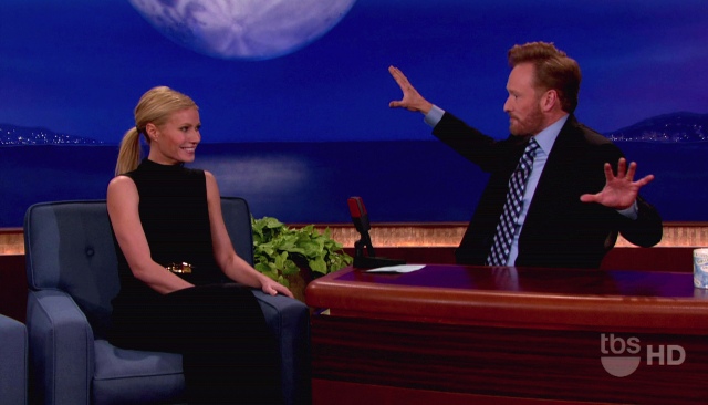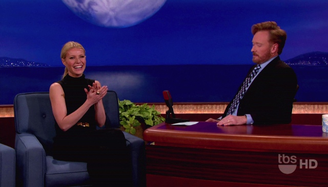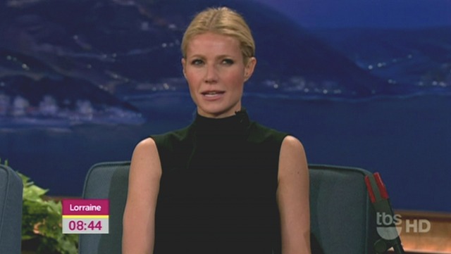 Now this, Gwyneth haters, this you can shove up in her face. And maybe her tits too? Reese pointed it out to me in an email last night. A lot of people think G had her breasts done after her babies. I’m not a breast expert, especially not the implant variety, so I can’t say...but when you get fake ones, do they sag when you sit down? Because, as Reese noted, Gwyneth’s are ridin’ real low on Conan’s couch.