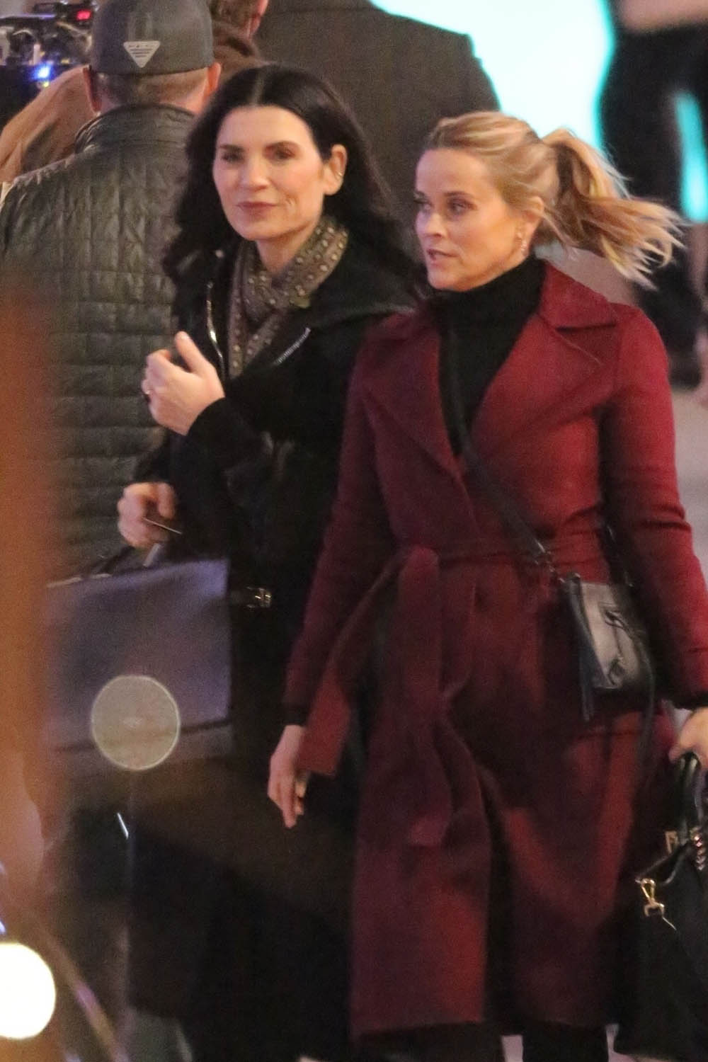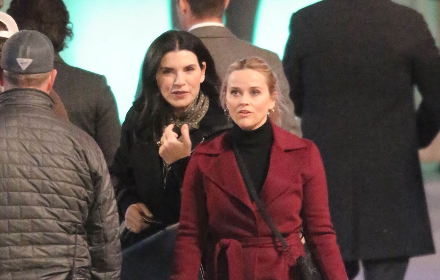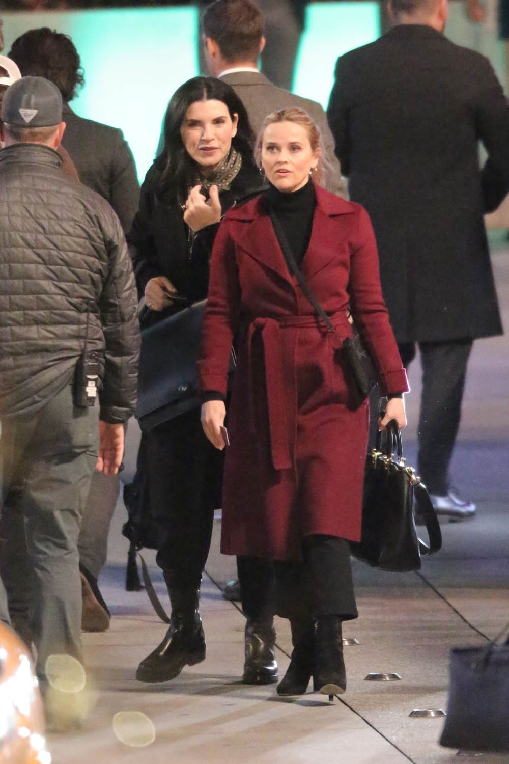 How about a quick old-fashioned Hollywood post? The Morning Show is now in production on season two, with new cast-member Julianna Margulies, and here she is with season one regulars Jennifer Aniston, Reese Witherspoon, and Mark Duplass shooting night scenes yesterday in LA which is supposed to look like New York.