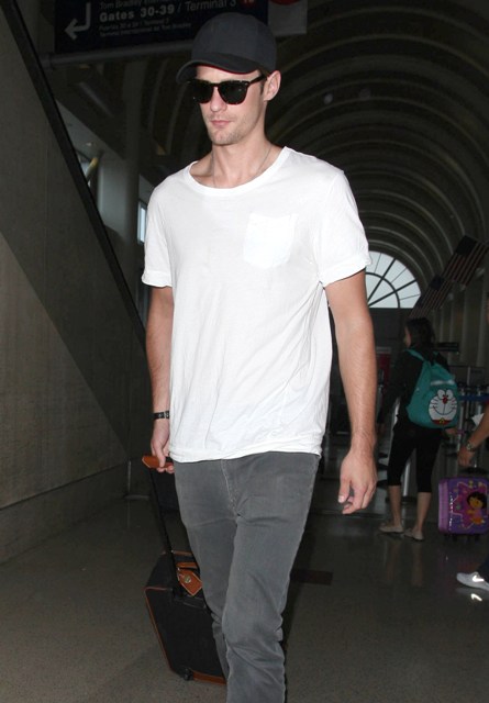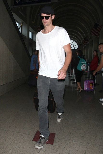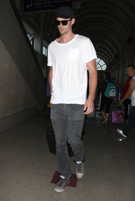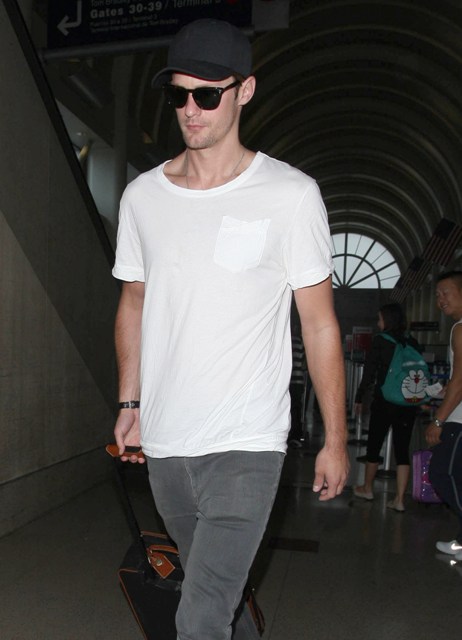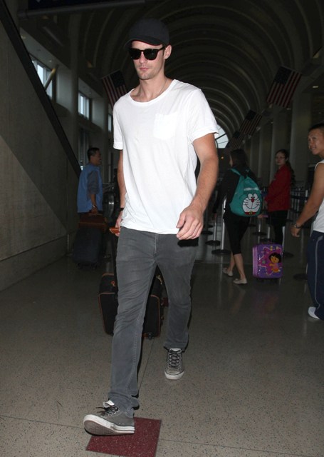 Attached - Alexander Skarsgard arriving at LAX last night.
