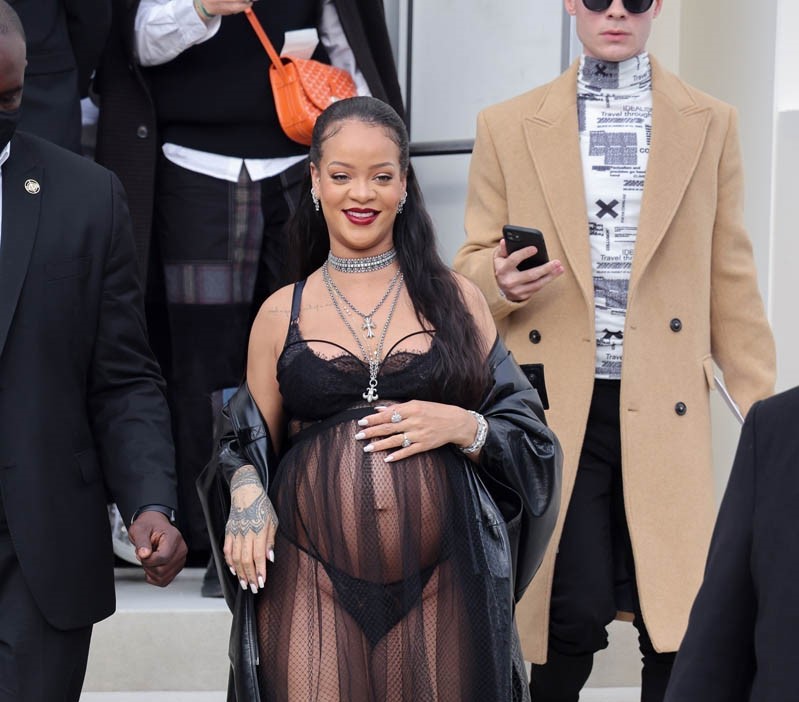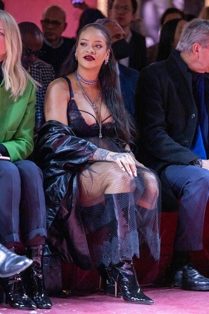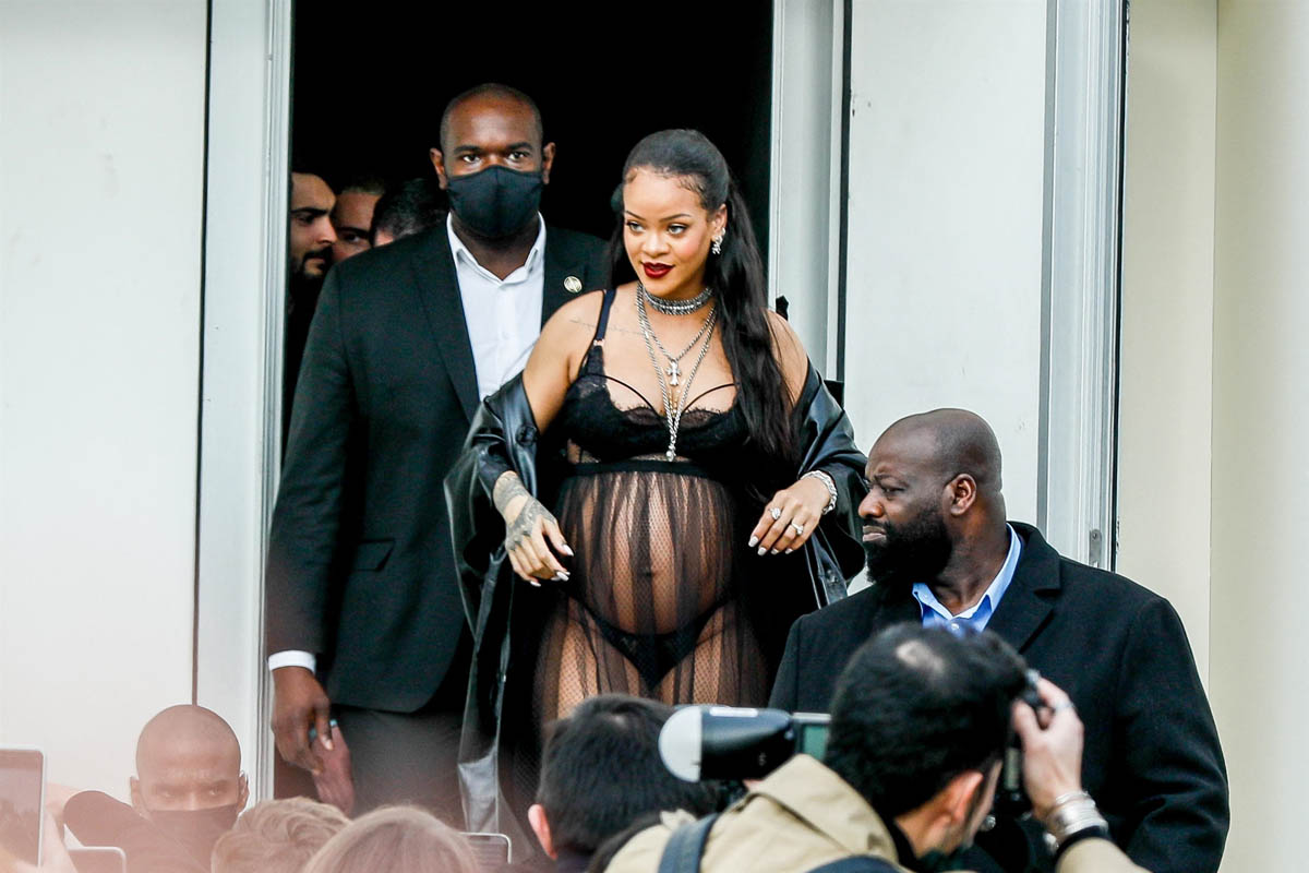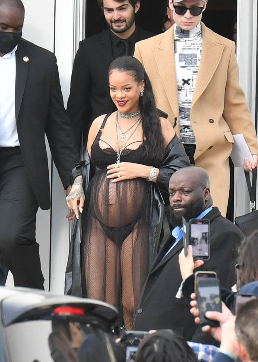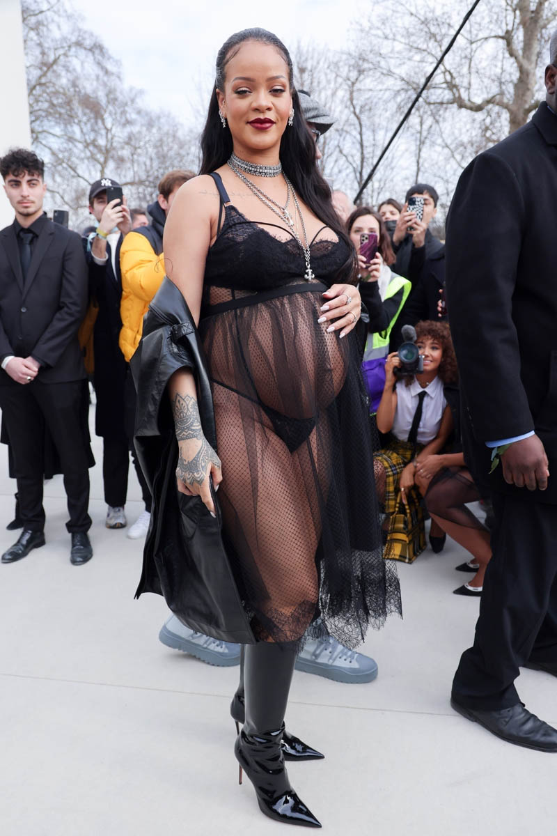 Rihanna is, once again, not letting her bump get in the way of her Fashion. She’s in her “raciest maternity look” at Paris Fashion Week, but MORE IMPORTANTLY, she’s telling off impudent reporters. This kid is going to be fabulous, aren’t they? (ELLE)