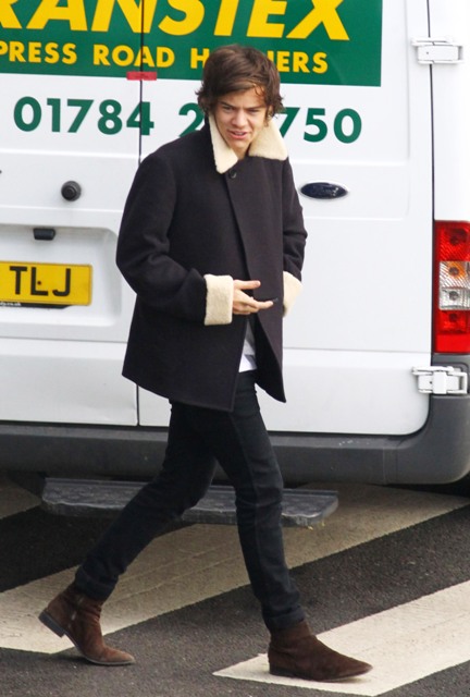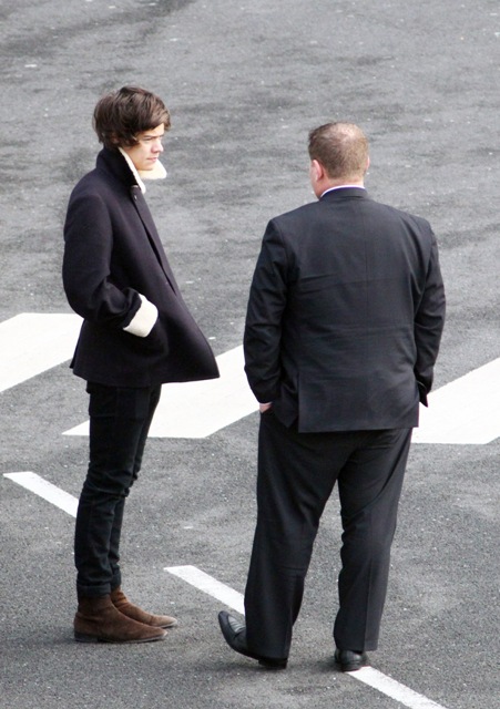 Attached - Harry Styles getting on a private plane today (with his bandmates, not pictured) in London.