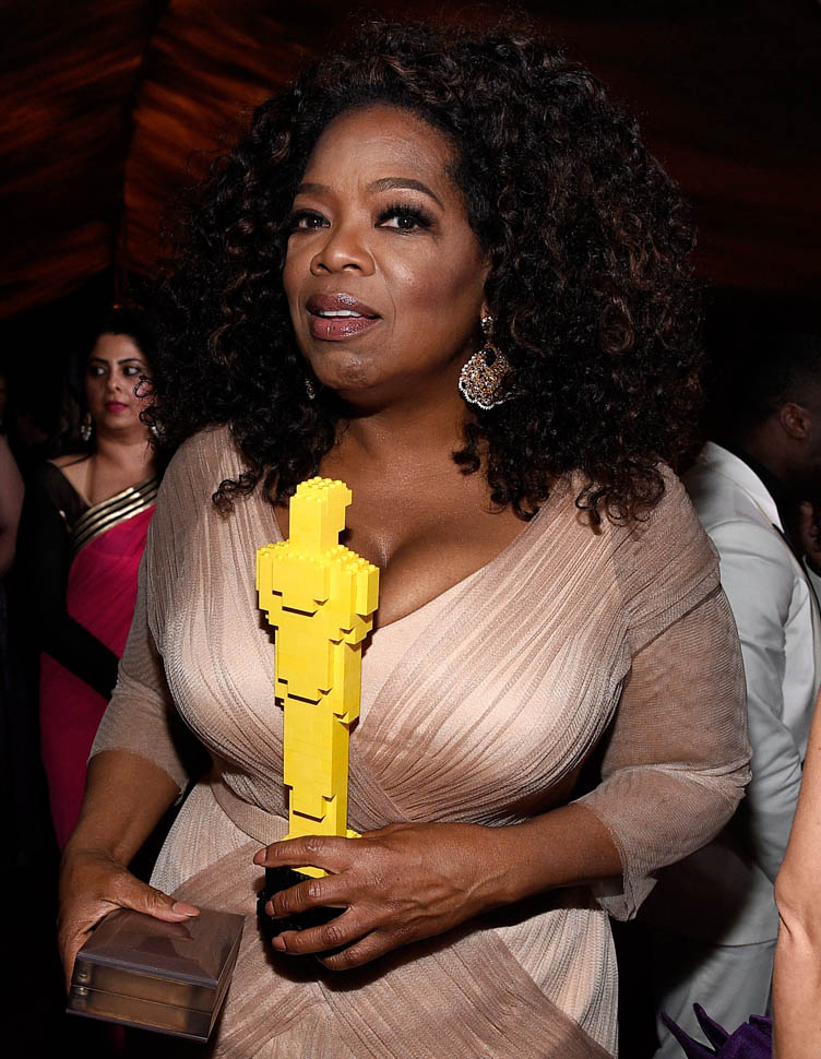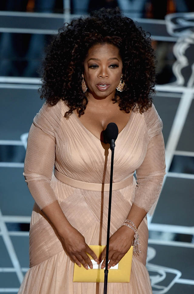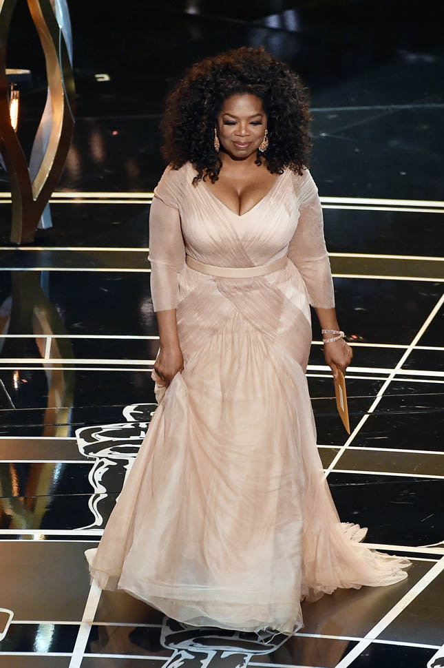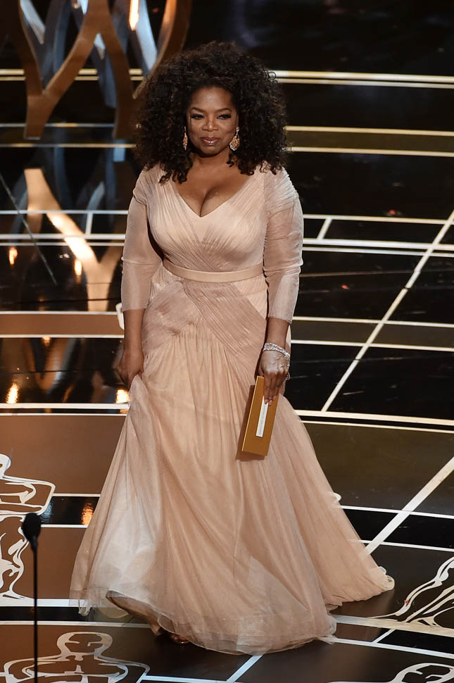 O had some big smiles on last night, and why not, at first? She was going to see her film recognized for its achievements, even if the academy considered them perhaps smaller than she did, and frankly, she was going to go be Oprah in public, which is something she loves.