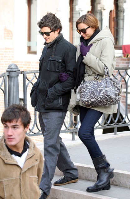 Three Whiskers Orly Bloom in Venice today with girlfriend Miranda Kerr, arm in arm, taking photos, in love, and not minding at all the presence of photographers following them for the shot. He needs the attention too.