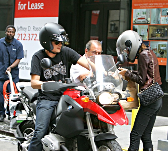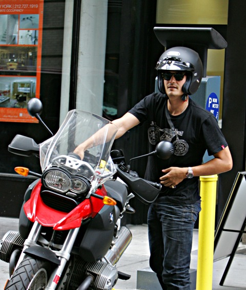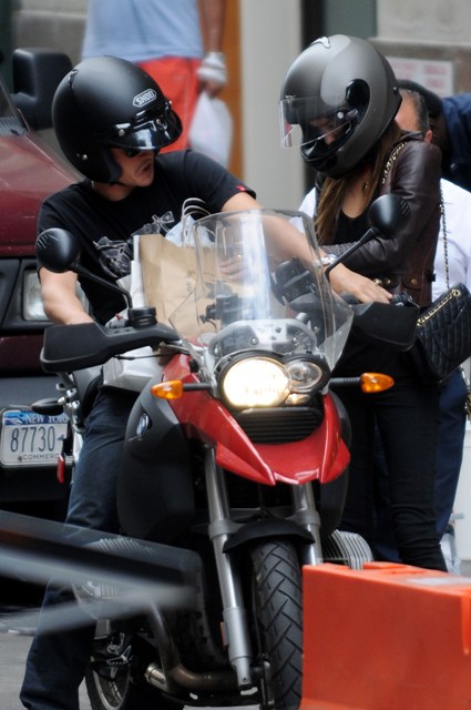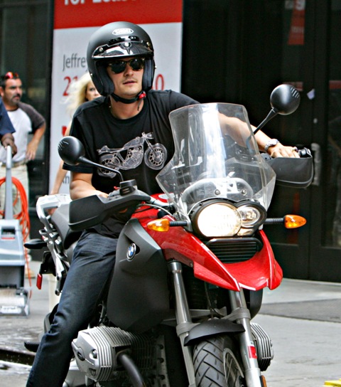 The manliest elf in Hollywood booted around New York yesterday on his bike, dropping off girlfriend and model Miranda Kerr.