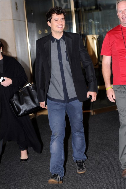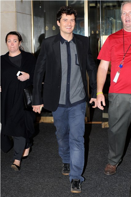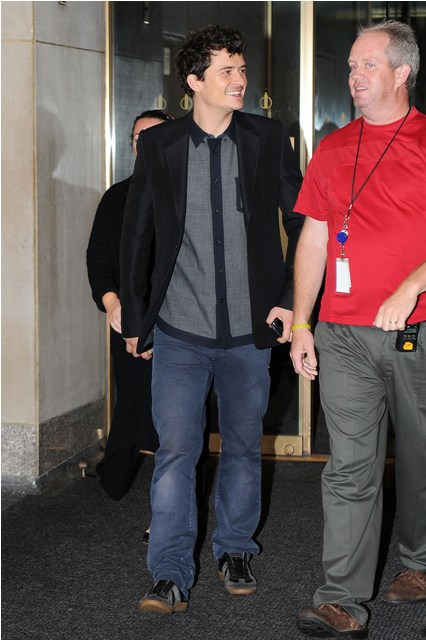 Orlando Bloom is making the rounds in New York to promote The Three Musketeers. It opens this weekend and... well... the reviews so far have been dismal. And apparently Paranormal Activity 3 is expected to win the box office this weekend while many predict that Musketeers, starring real(ish) actors, will bomb.