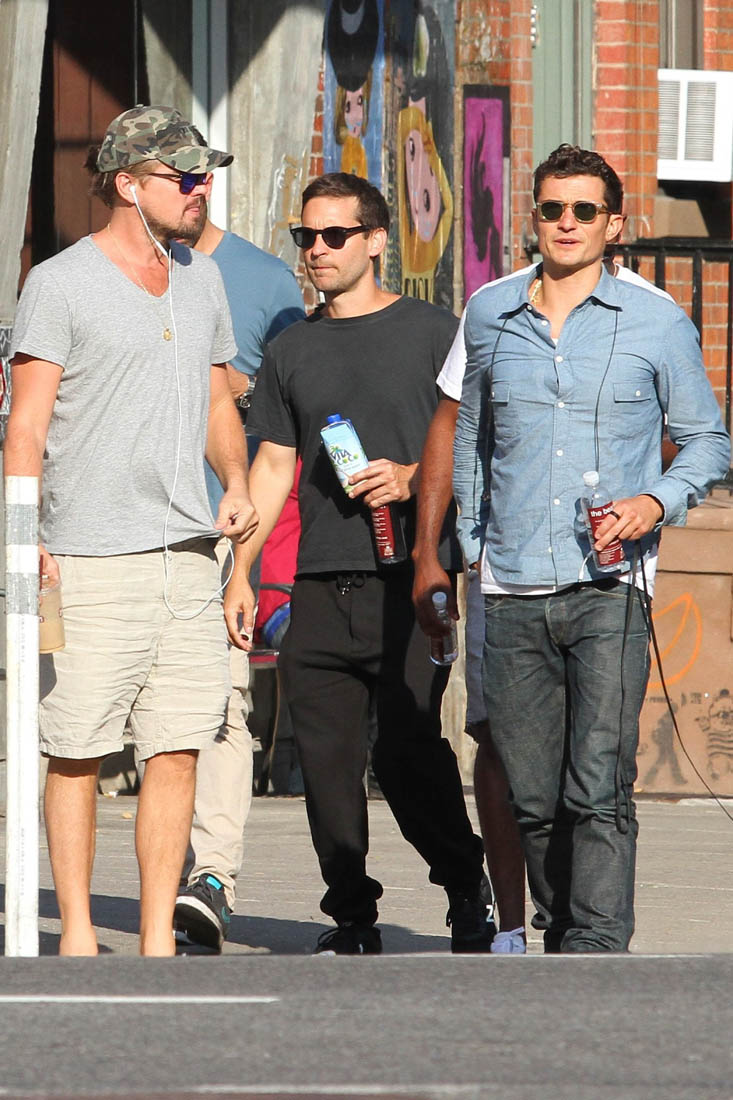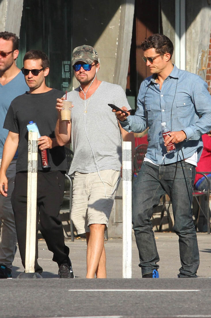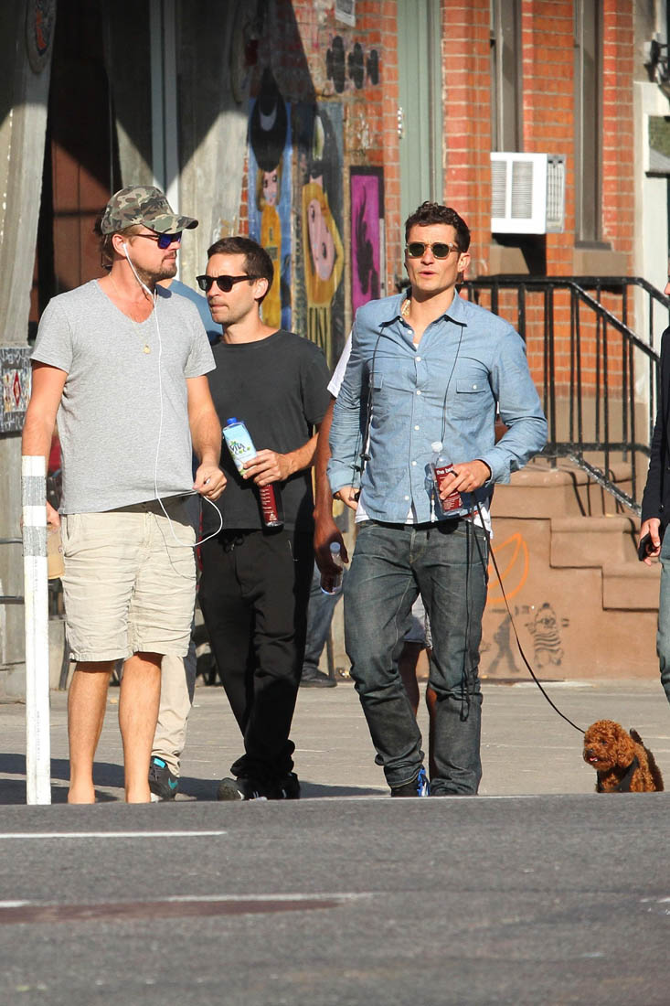Can we call Orlando Bloom an official member of the Wolf Pack now? Here’s Orly, with Alpha Wolf Leonardo DiCaprio and Beta-Plus Wolf Tobey Maguire, and some other career wolves, hanging out in New York yesterday. Leo was also seen the other day, with the pack, and Jennifer Meyer, spending time with the Meyer-Maguire kids too. On those days, Alpha Wolf becomes Uncle Leo and hunting season is temporarily put on pause. Without the kids though, well, the Wolf Pack is back on search? For what? Please.