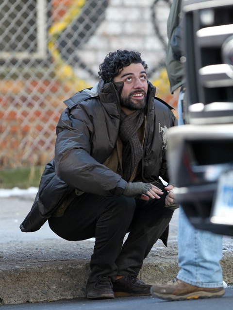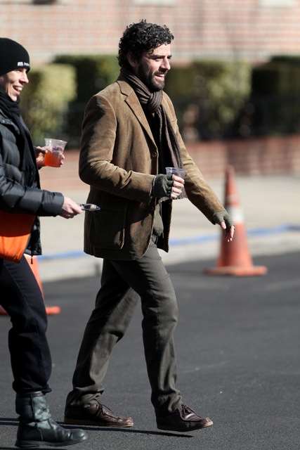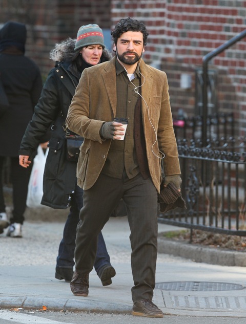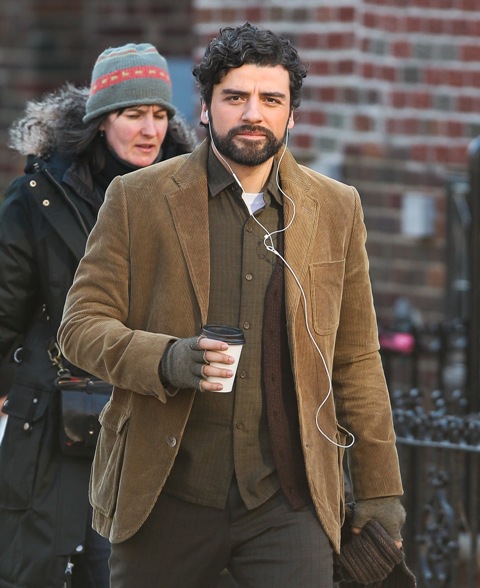 The Coen Brothers new film Inside Llewyn Davis has started shooting in New York. Here’s the star Oscar Isaac on set today. Justin Timberlake has been cast in a supporting role. And you will see, yet again, how JT compares unfavourably with real actors.