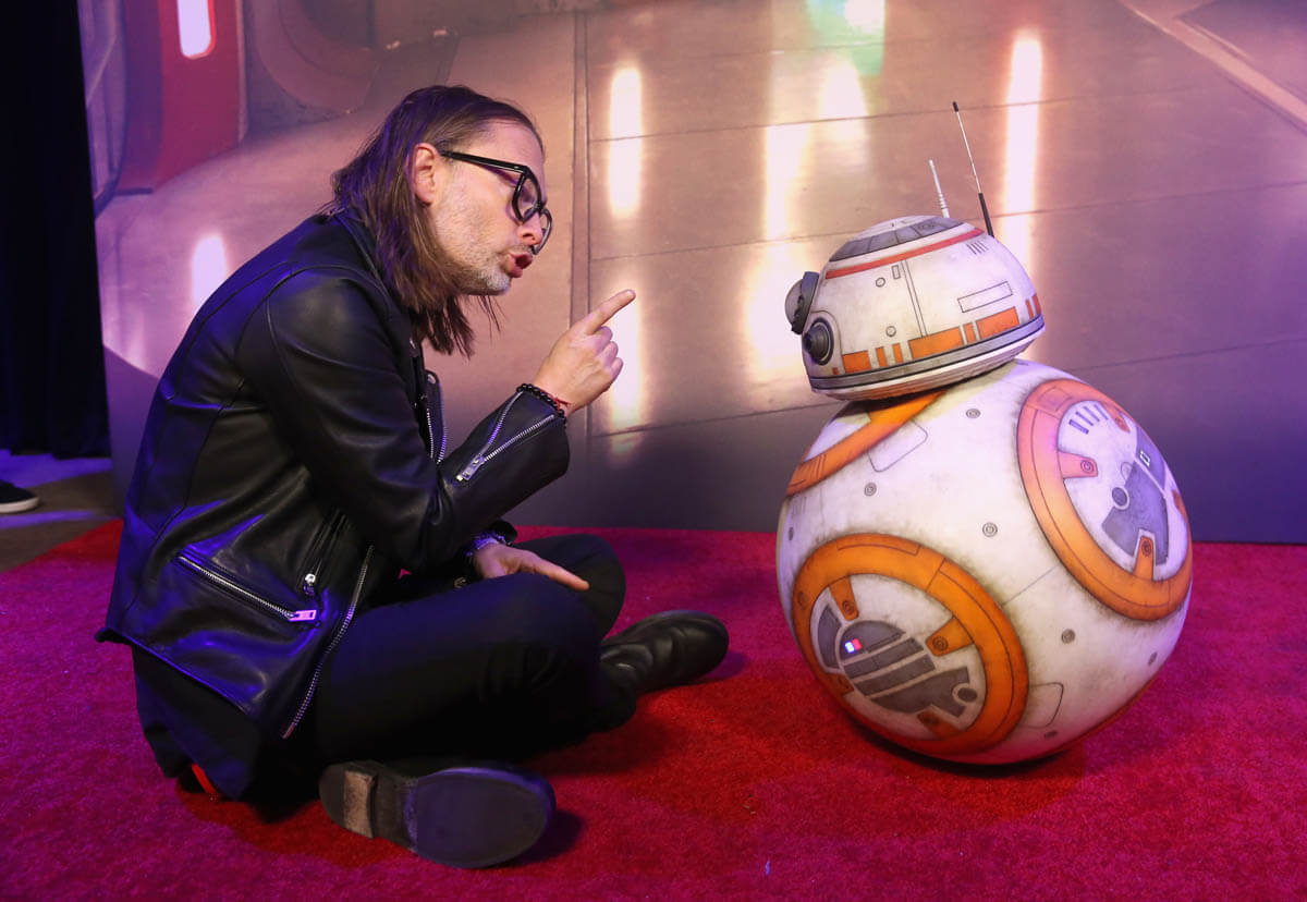 Here he is with Thom Yorke who rarely poses with anyone. And somehow BB-8 scammed his way in there with his baby squeaks and beady little eyes. What have I been trying to TELL YOU.