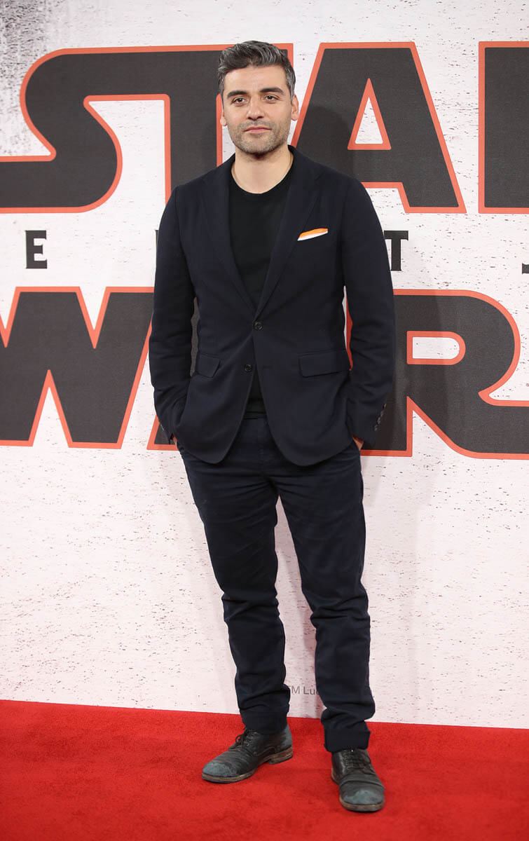 Here are Oscar and Elvira Lind last night at the European premiere of The Last Jedi in London. And Oscar today at the photo call. Earlier this year, Oscar and Elvira became parents to their first child Eugene, named after his mother who died in February. That’s about all we know. And I’m not complaining. If Oscar Isaac wants to show up every few months or so, with those dreamy eyes and that gorgeous hair, and be in a great movie, and then disappear, I’m good.