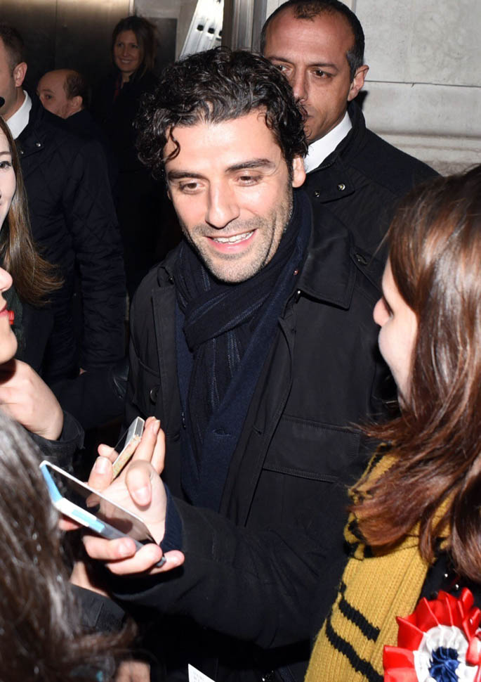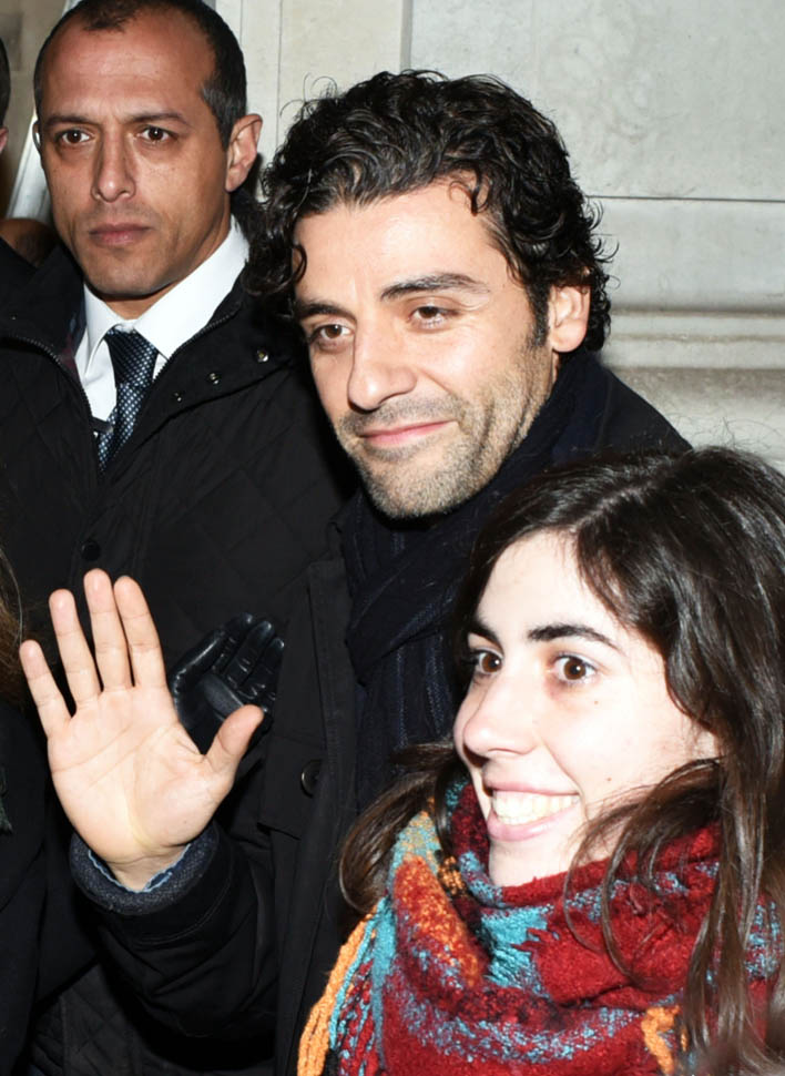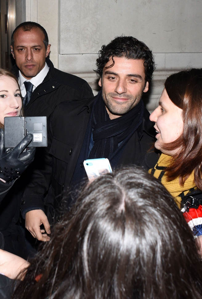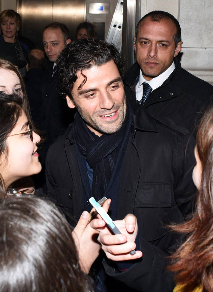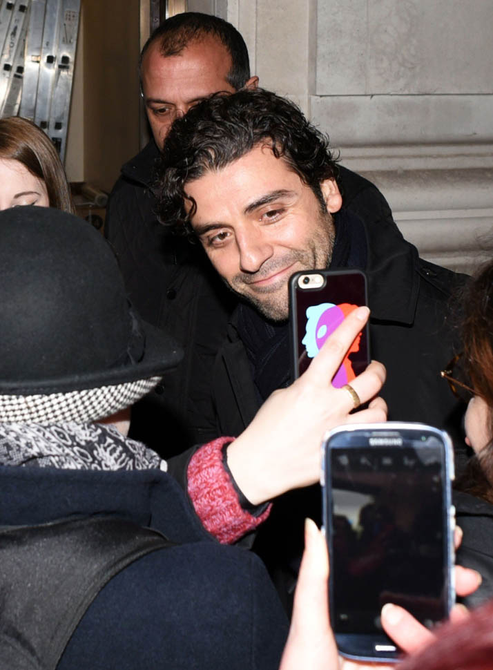 Anyway, Oscar has been in London working on Star Wars VIII, reprising his role as Poe Dameron, aka Lainey Saw Him First. As you can see, Poe Hair. Way better now than Bradley Cooper Hair.