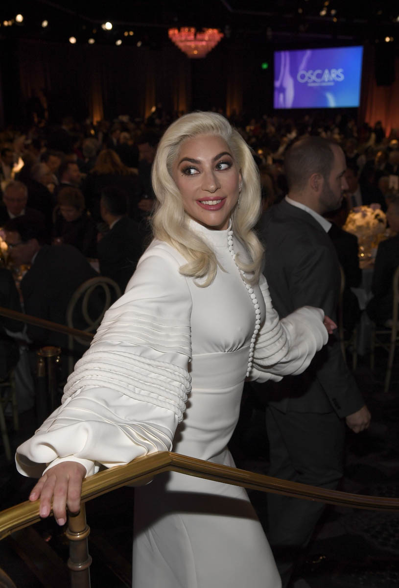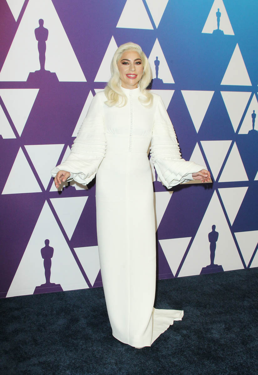 Which is why I enjoyed this Gaga moment at the luncheon. Gaga was enjoying the moment, Gaga was enjoying Gaga. In what Vogue says is a white bespoke Louis Vuitton – gorgeous, perfect for the occasion, and very much in the spirit of what she’s been wearing through award season since January. Light colours, soft shapes, nothing like what we usually get from her at, say, the Grammys. This is her “movie star” aesthetic. Interestingly, the Grammys are on Sunday. She’s nominated for a Grammy. She’s also nominated for two BAFTAs and they’re happening on the same day. What will she wear to the BAFTAs?