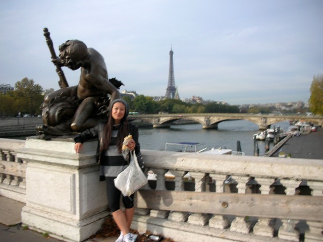 Grab a baguette from Paul on the Champs Elysees for 3 euros and a coffee to go – super CHOOPy as no one drinks coffee to go in Paris, coffee must be enjoyed in a civilised manner, sitting down, looking all French and pouty and hot – and head across the Pont Alexandre III with your food in a plastic bag, wearing trainers, eliciting horrified glances from locals who’ve never and will never own a pair of Asics in their lives, to say nothing of the indignity of walking around swinging a plastic bag from your wrist. Michelle said, upon reviewing her photo album, that I actually looked like a bum.