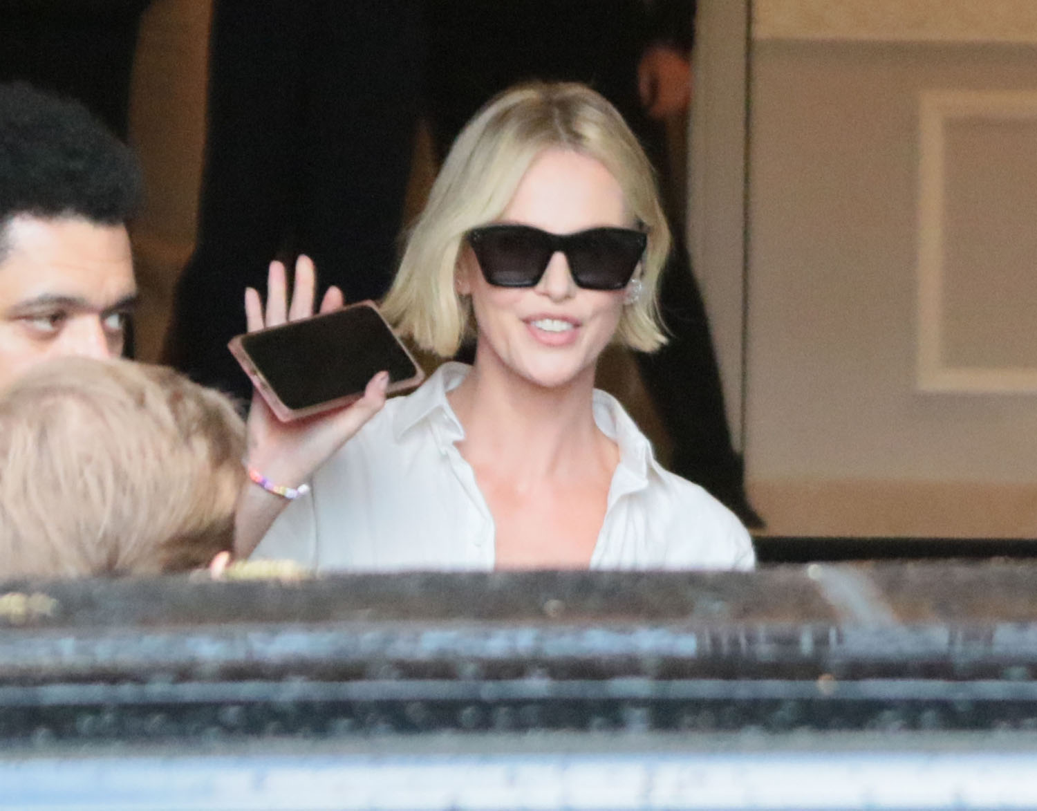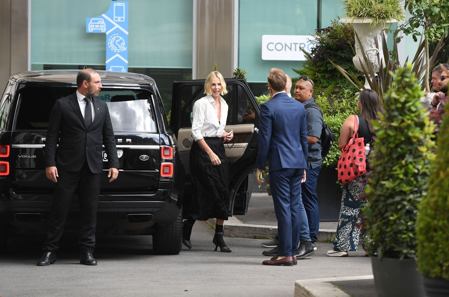 Attached - Charlize arriving at her hotel yesterday in Italy.