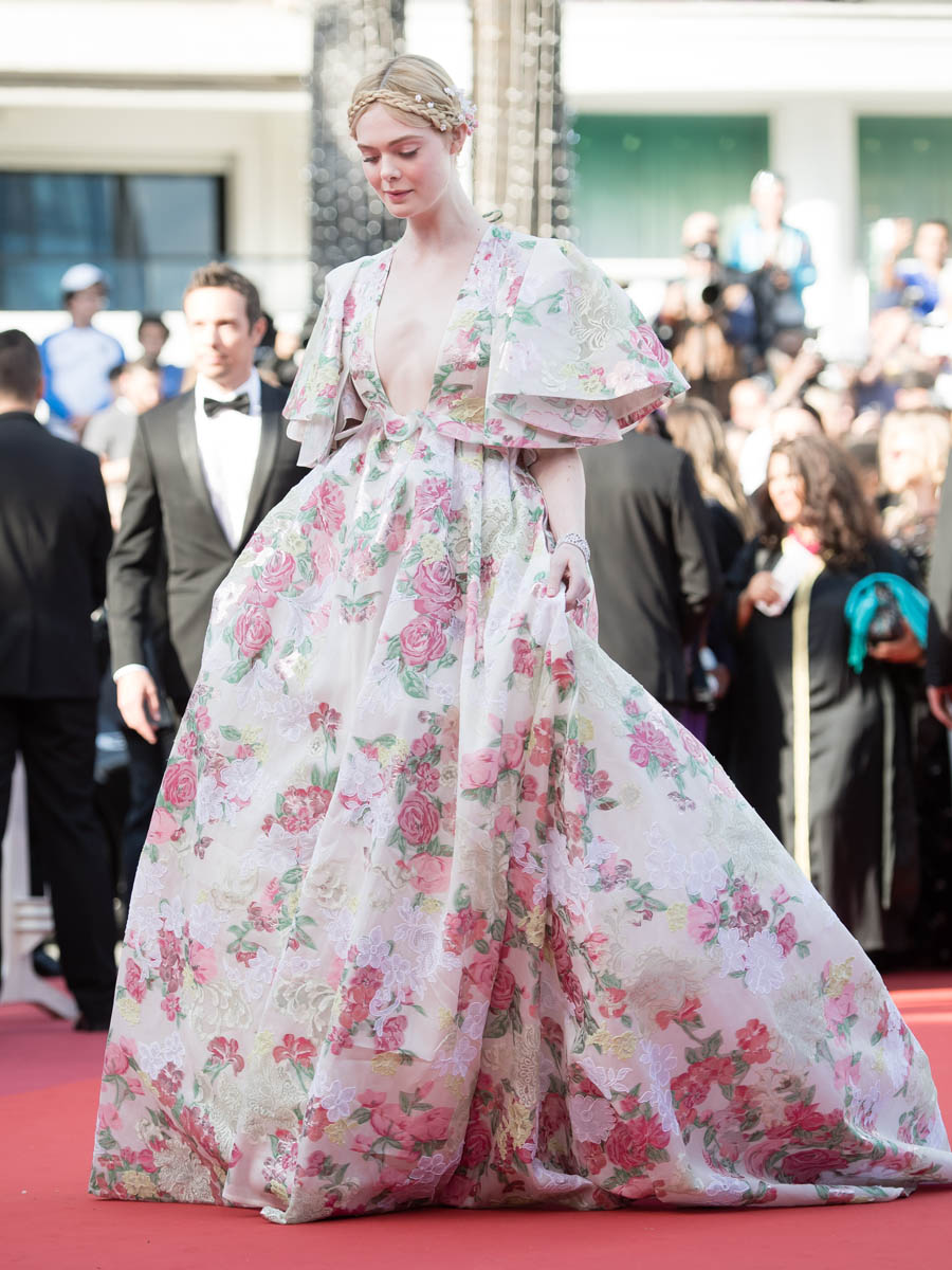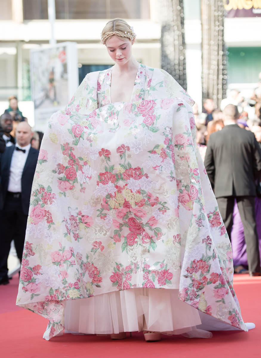 As Sarah predicted in her Cannes preview earlier this week, one of the highlights of the festival would be Elle Fanning’s fashion. She was right – but not for her opening night dress which, you’d THINK, would have been the statement but I was kind of underwhelmed: