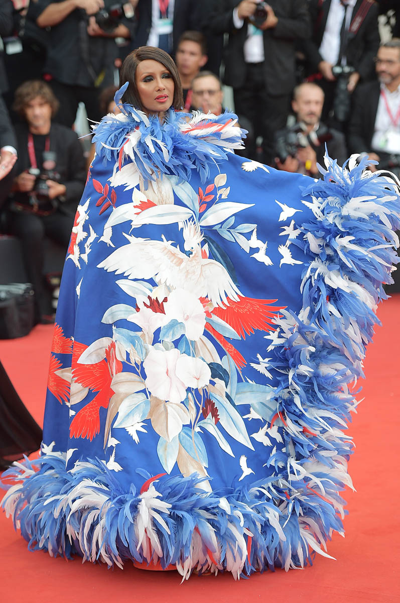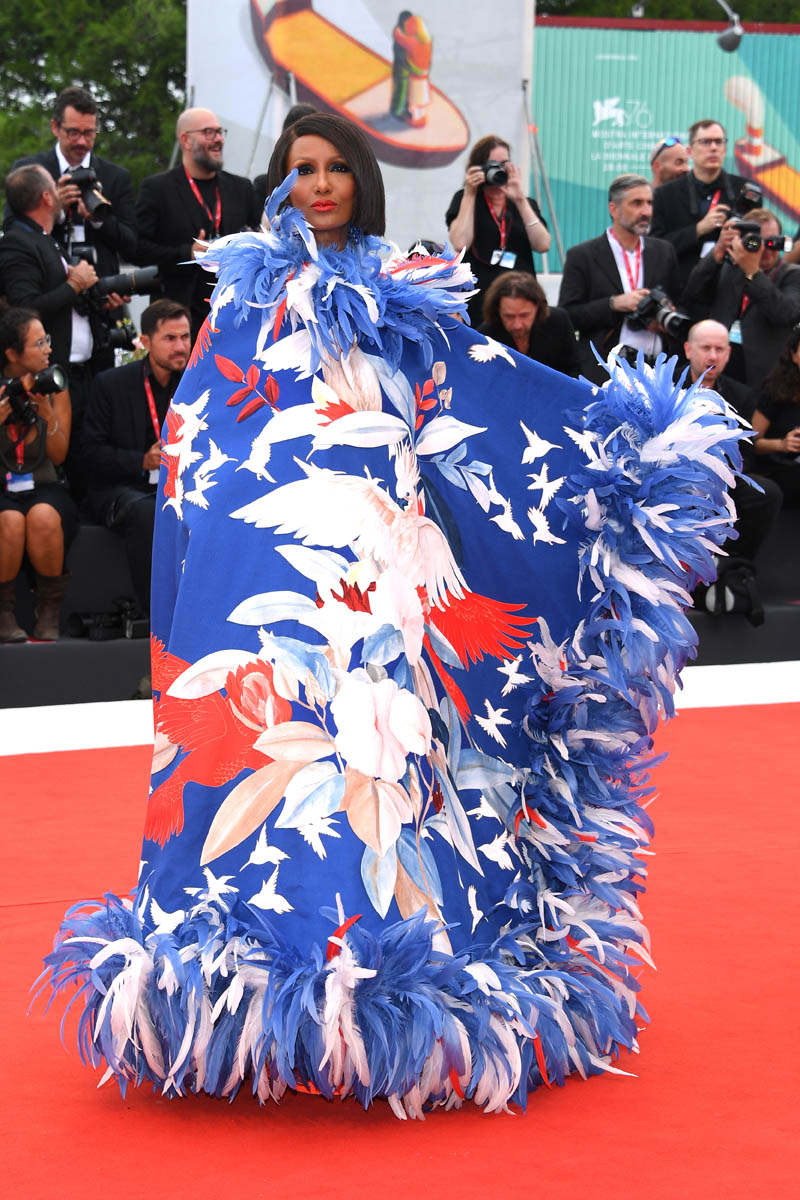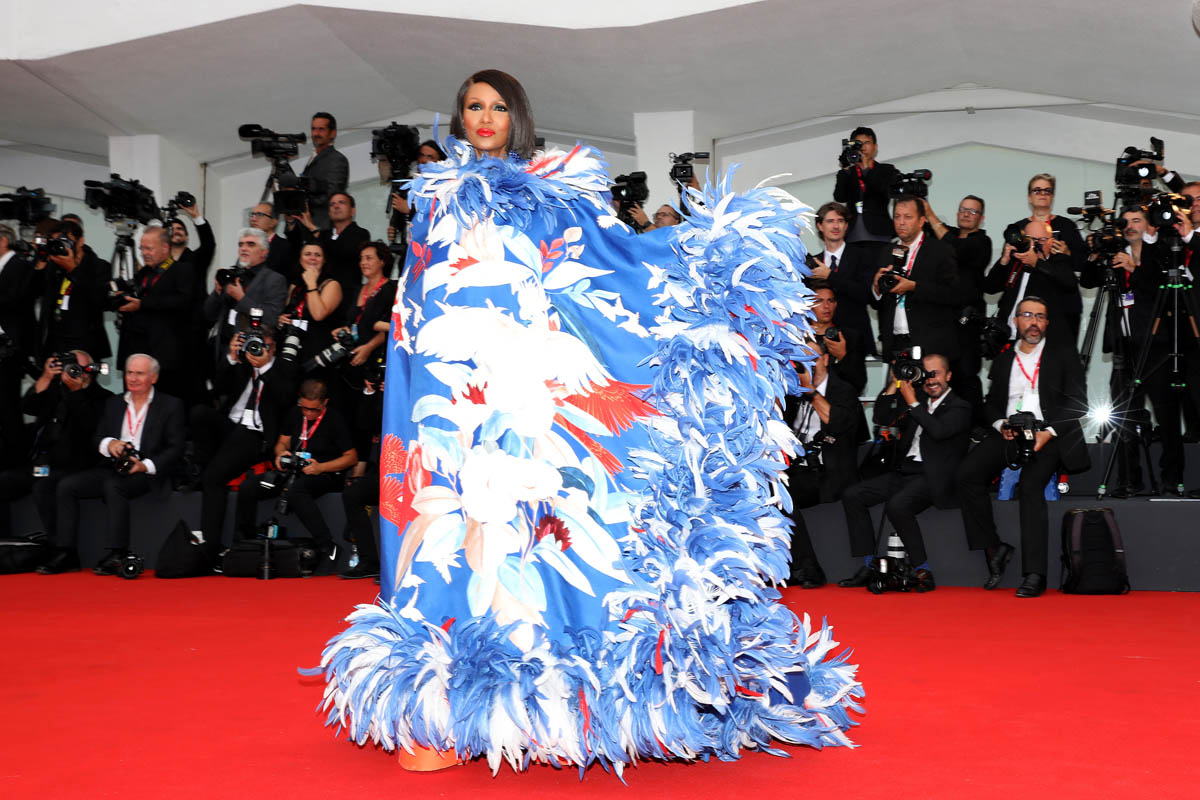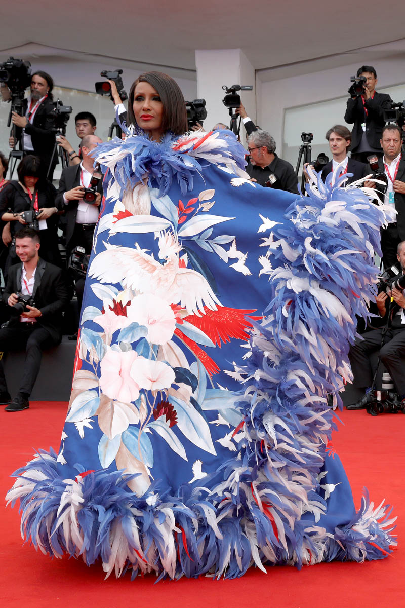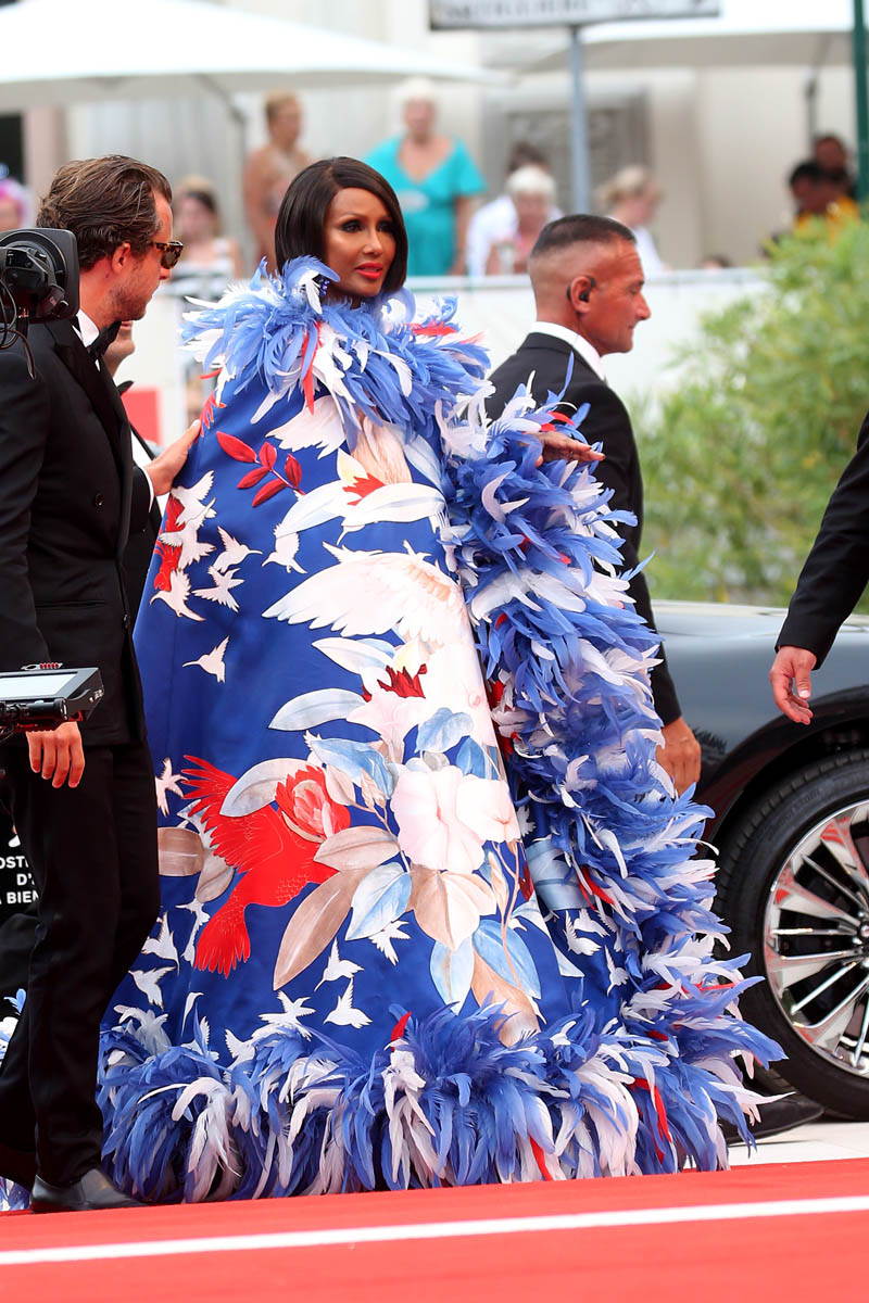 Iman showed up on the Venice Film Festival opening gala red carpet and, well, no other outfit mattered. Everyone else, no exaggeration, seemed boring on a night when it was supposed to be all flash. It was all flash but it belonged to one person. Look at her. Look at her in this Valentino. It’s exactly what you want out of a moment like this: extravagance, drama, spectacle.
