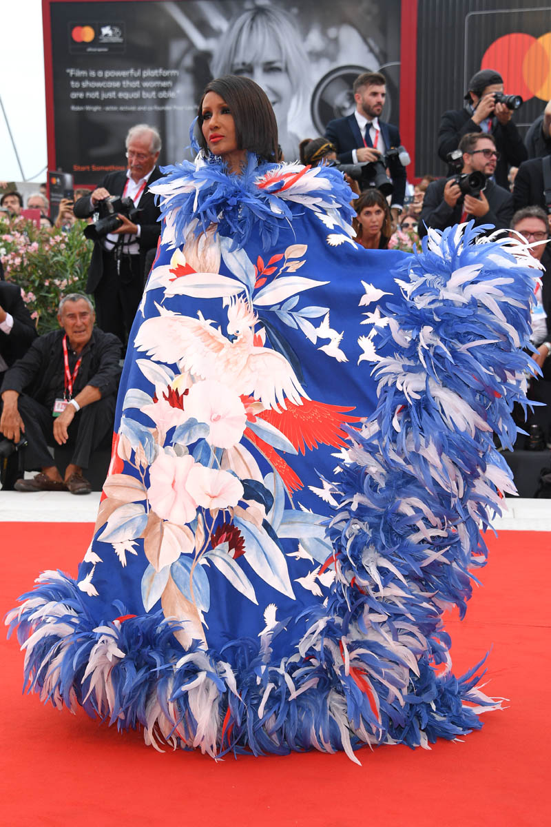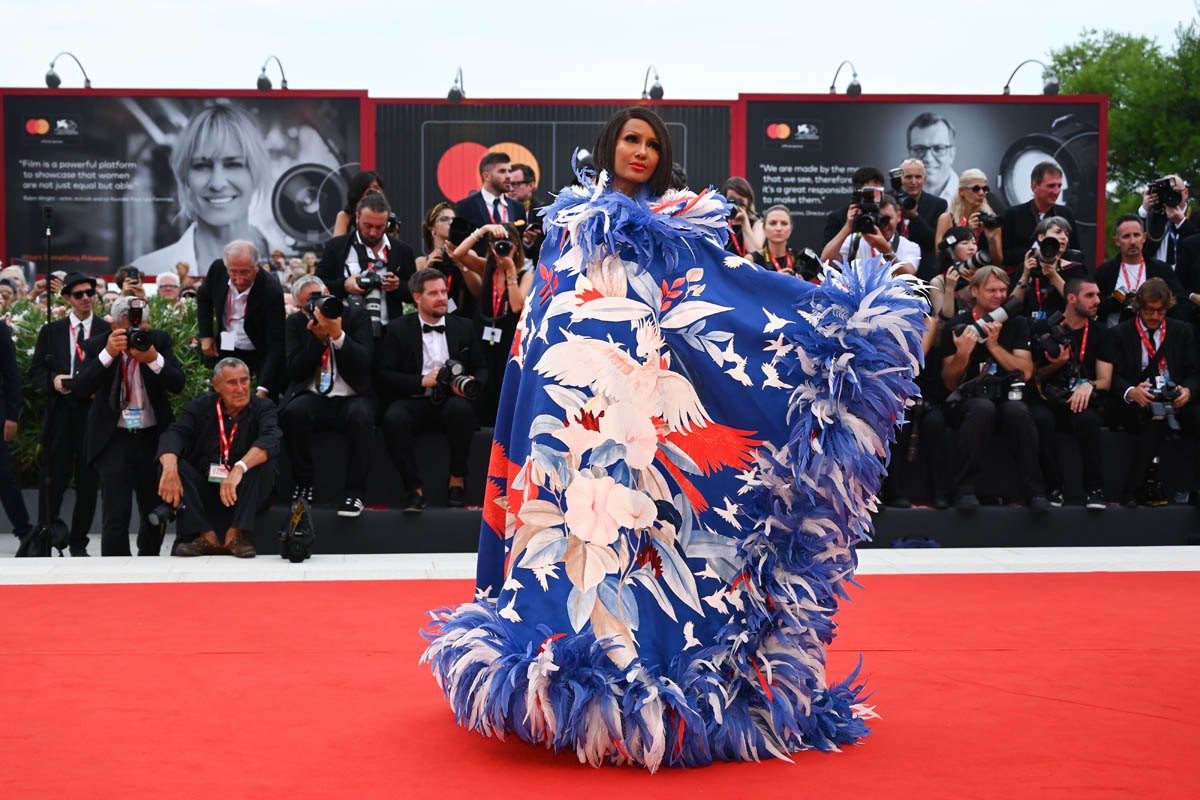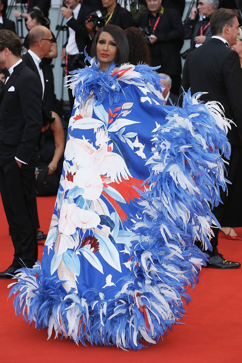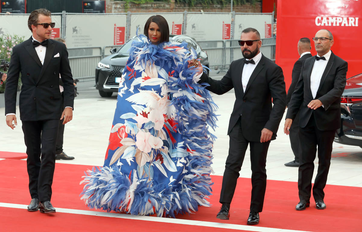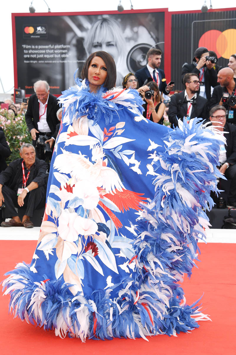 Iman showed up on the Venice Film Festival opening gala red carpet and, well, no other outfit mattered. Everyone else, no exaggeration, seemed boring on a night when it was supposed to be all flash. It was all flash but it belonged to one person. Look at her. Look at her in this Valentino. It’s exactly what you want out of a moment like this: extravagance, drama, spectacle.