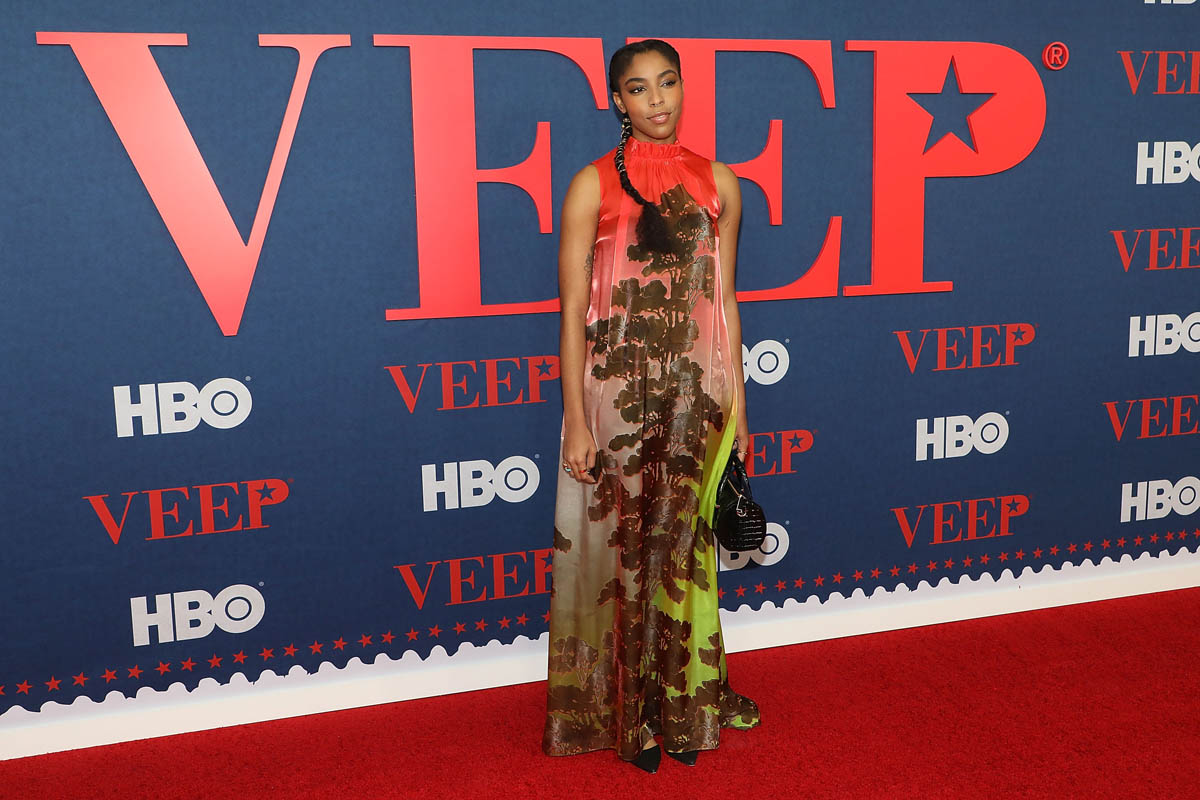 Let’s start with the dress – suuuuch a good dress with all those different shades of colours blending into each other, all of it anchored by that print of a tree, making her look even taller than she already is. Which I love because, as Duana, who is also tall but not as tall as Jessica Williams, has observed before, tall women sometimes feel like they have to UN-tall themselves. This is not what Jessica is doing here. She is wearing her height, proudly, which is to say she’s just being herself.