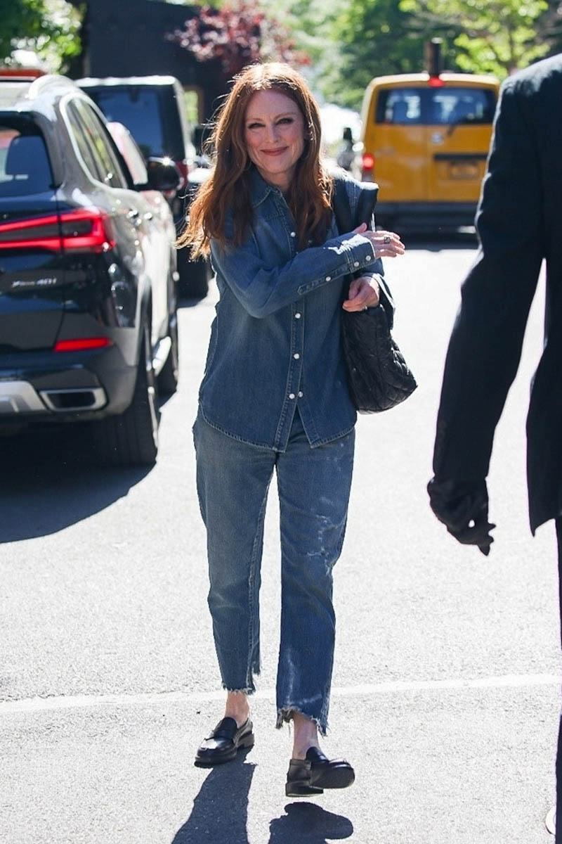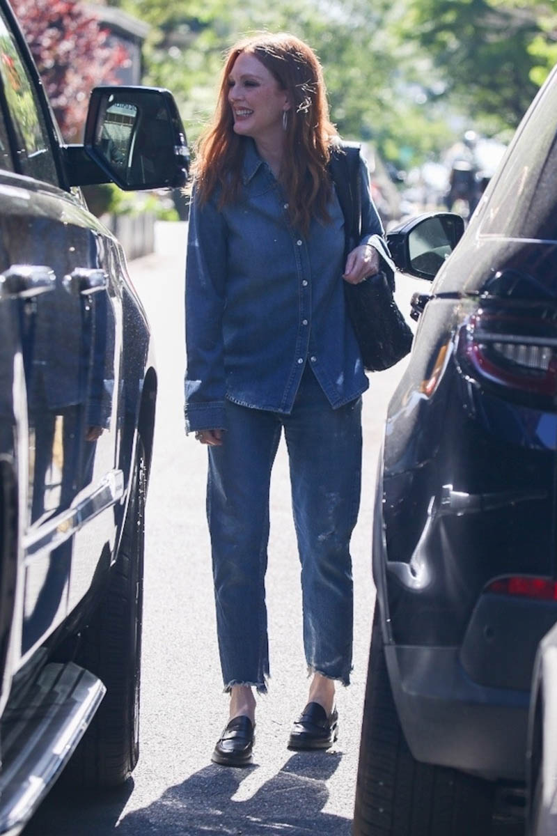 Julianne Moore was photographed yesterday in New York, presumably doing some promotion for the upcoming Lisey’s Story, an eight episode series premiering on Apple TV+ on June 4. The series is based on Stephen King’s book of the same name and he adapted his own work for television, directed by Pablo Larraín who seems to be becoming, or already is?, an actress’s director with Jackie and Natalie Portman, the upcoming Spencer with Kristen Stewart, and now Julianne. I’ve embedded the Lisey’s Story trailer below – it’s Stephen King so, obviously, there’s the element of psychological thriller here but this is also a story about grief and there’s no doubt we’re getting the full Julianne Moore here, all the angles and depth she can bring to a role. I wonder if that means that Julianne will be in contention for an Emmy next year. Lisey’s Story does not premiere in time for consideration this year but since it’s Julianne Moore, we could see her back at the Emmys in 2022, which would be ten years after her first Emmy nomination and win for playing Sarah Palin in Game Change. How was it that long ago?!
