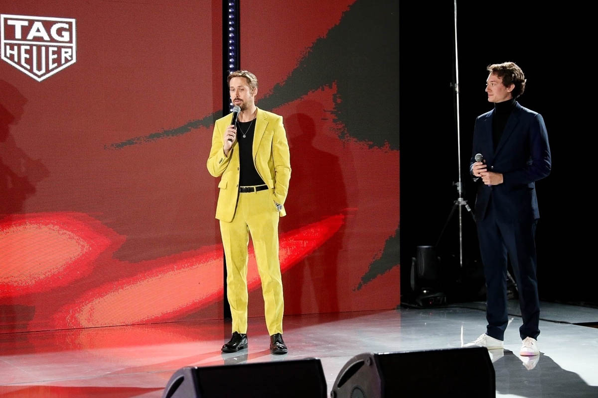 This is a Tag Heuer event. Ryan has just been named their new ambassador and what makes this noteworthy is that this is his first ever brand partnership. That’s right, Ryan Gosling has never signed a partnership deal. It’s been a 20 year career, and it’s not that the opportunities weren’t there, he just never wanted to until now. So the fact that it’s Tag – I mean it’s a great get for Tag, that’s exactly what you want in an ambassador. Someone so selective, someone who is well-known, super respected, but also comes with some mystique. That’s Ryan Gosling. Already they’re comparing him to Steve McQueen, which is stated in the Tag press release announcing Ryan as their person.