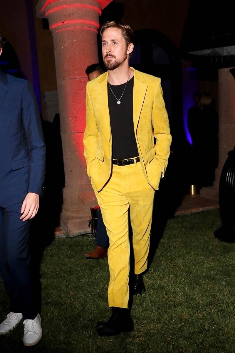 There were a lot of outfits to choose from this week for the Outfit of the Week. But the reason it’s Ryan Gosling is, well, because it’s Ryan Gosling. Ryan Gosling doesn’t step out much. He’s quiet even when there’s no pandemic, so the fact that we have new Ryan Gosling photos, and he’s dressed in a beautiful mustard yellow suede suit…it was an automatic.
