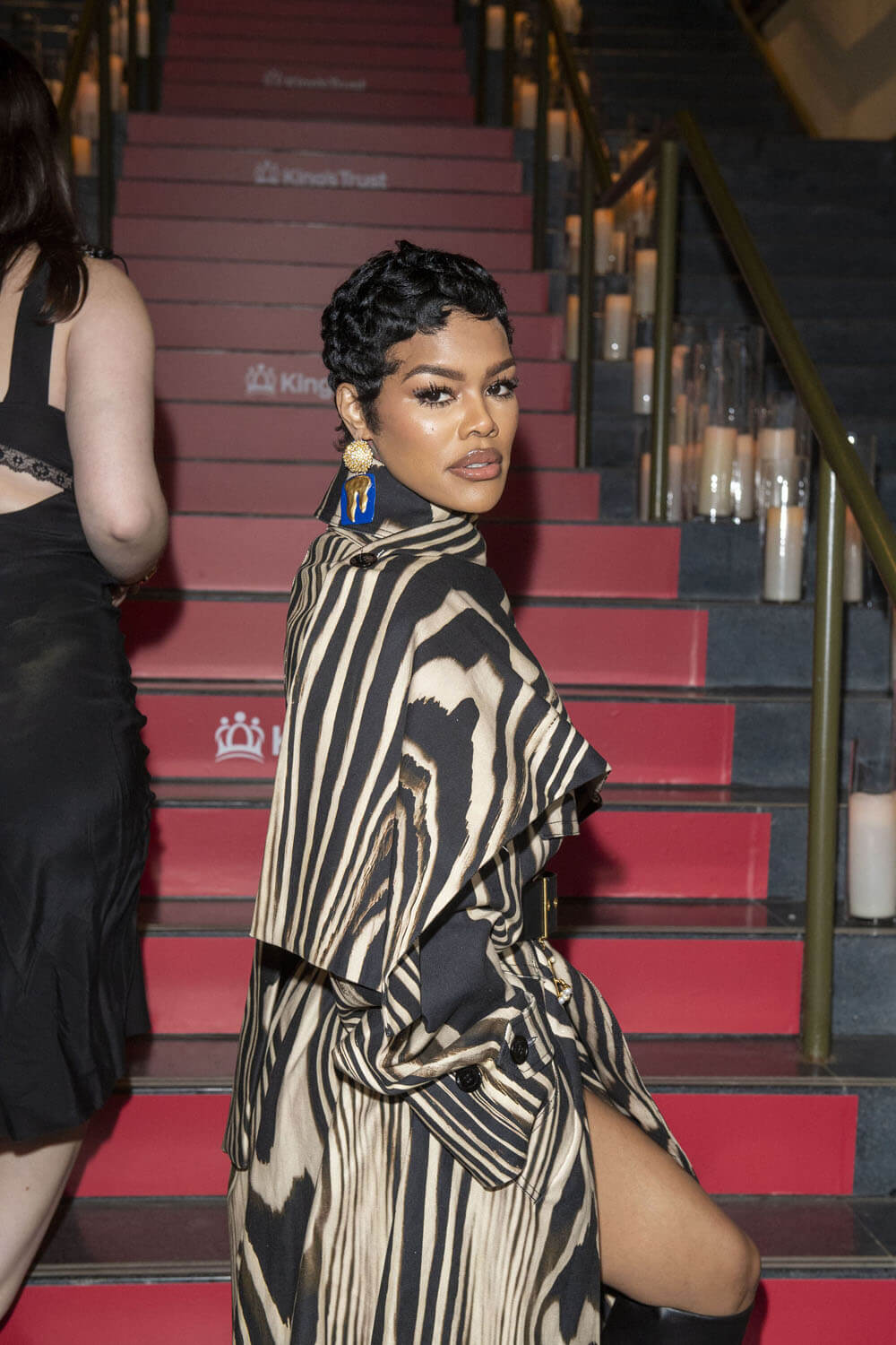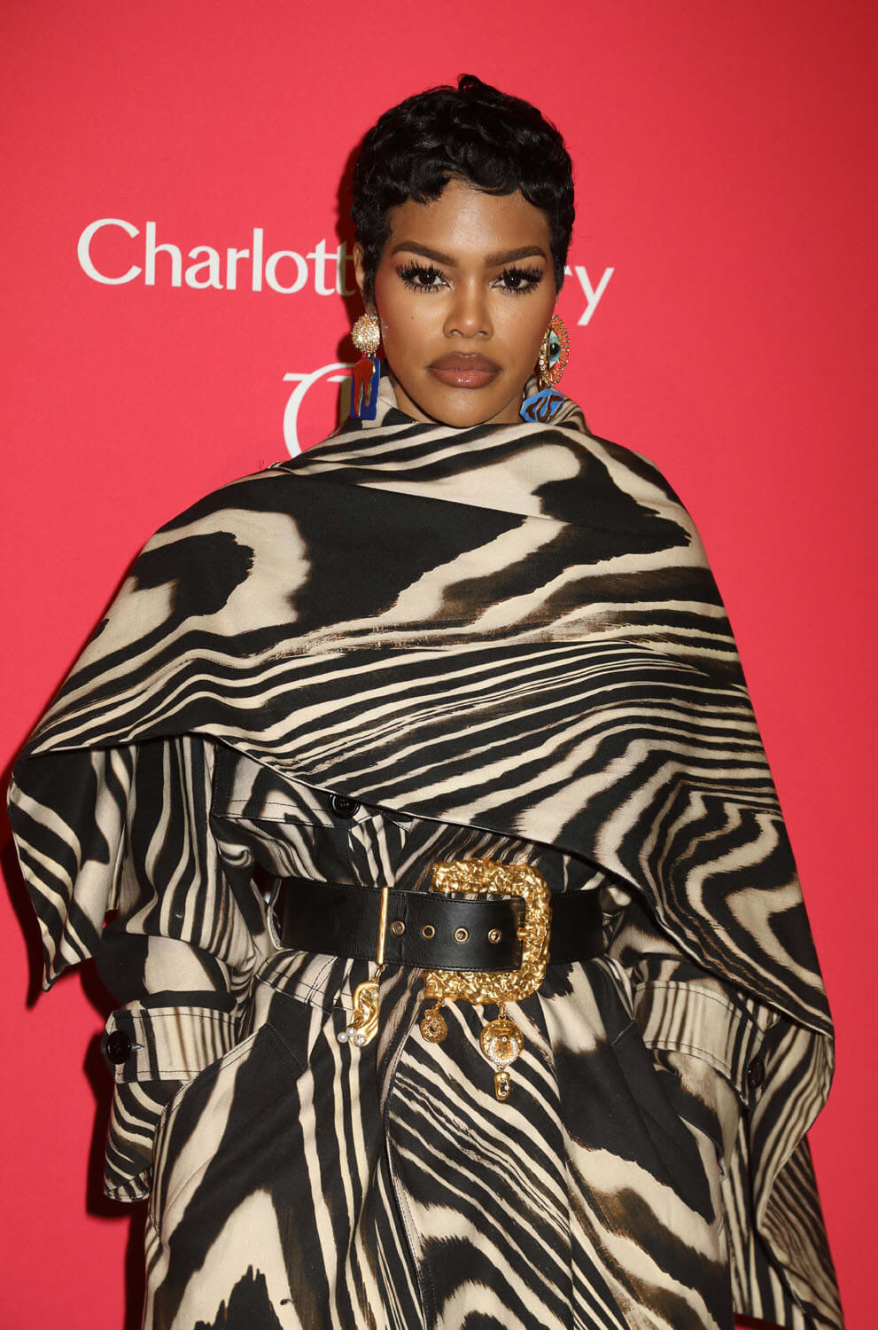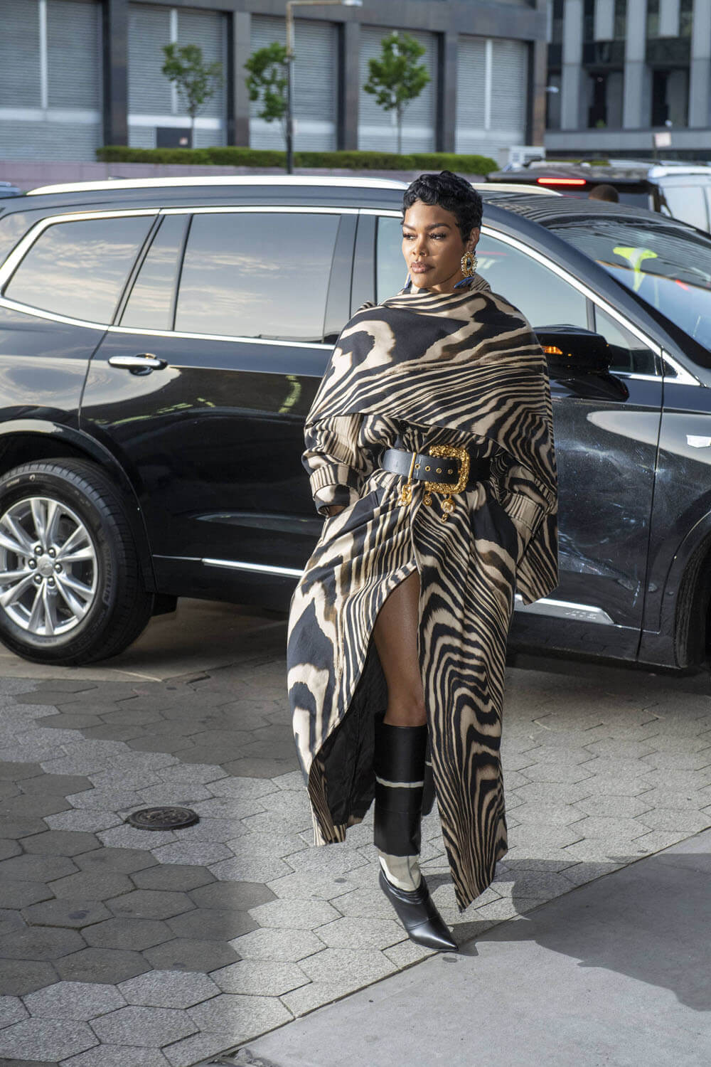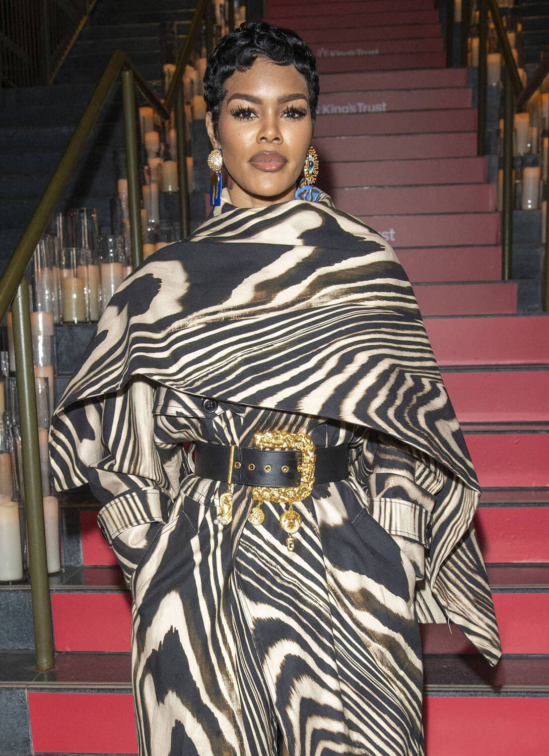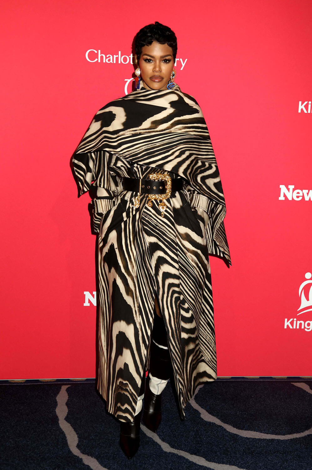 Last night was the 4th annual King’s Trust Global Gala and I’m here to talk about Teyana Taylor and her excellent outfit. The print trench is sublime on her, how it dramatically wraps around the shoulders and goes up the neck, but she makes it that much more interesting with the Schiaparelli belt, elevating an already great piece to the next level. And then the boots, matching but also clashing, to finish it all off.