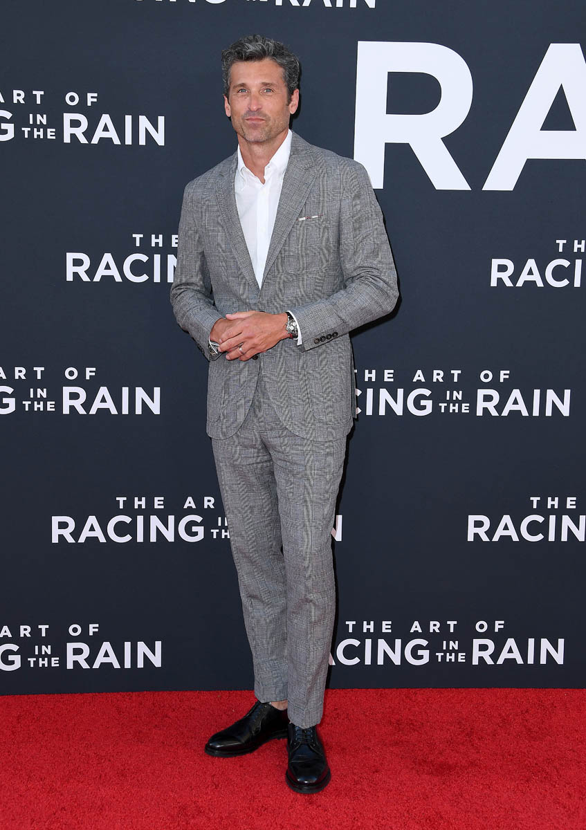 Anyway, Enzo loves race car driving because his human is a race car driver. Patrick Dempsey also loves race car driving which is one of the reasons he’s a producer on the movie. He and his wife Jillian (they just celebrated their 20th anniversary) were at the premiere last night and they’re the Outfit(s) of the Week this week mostly because …