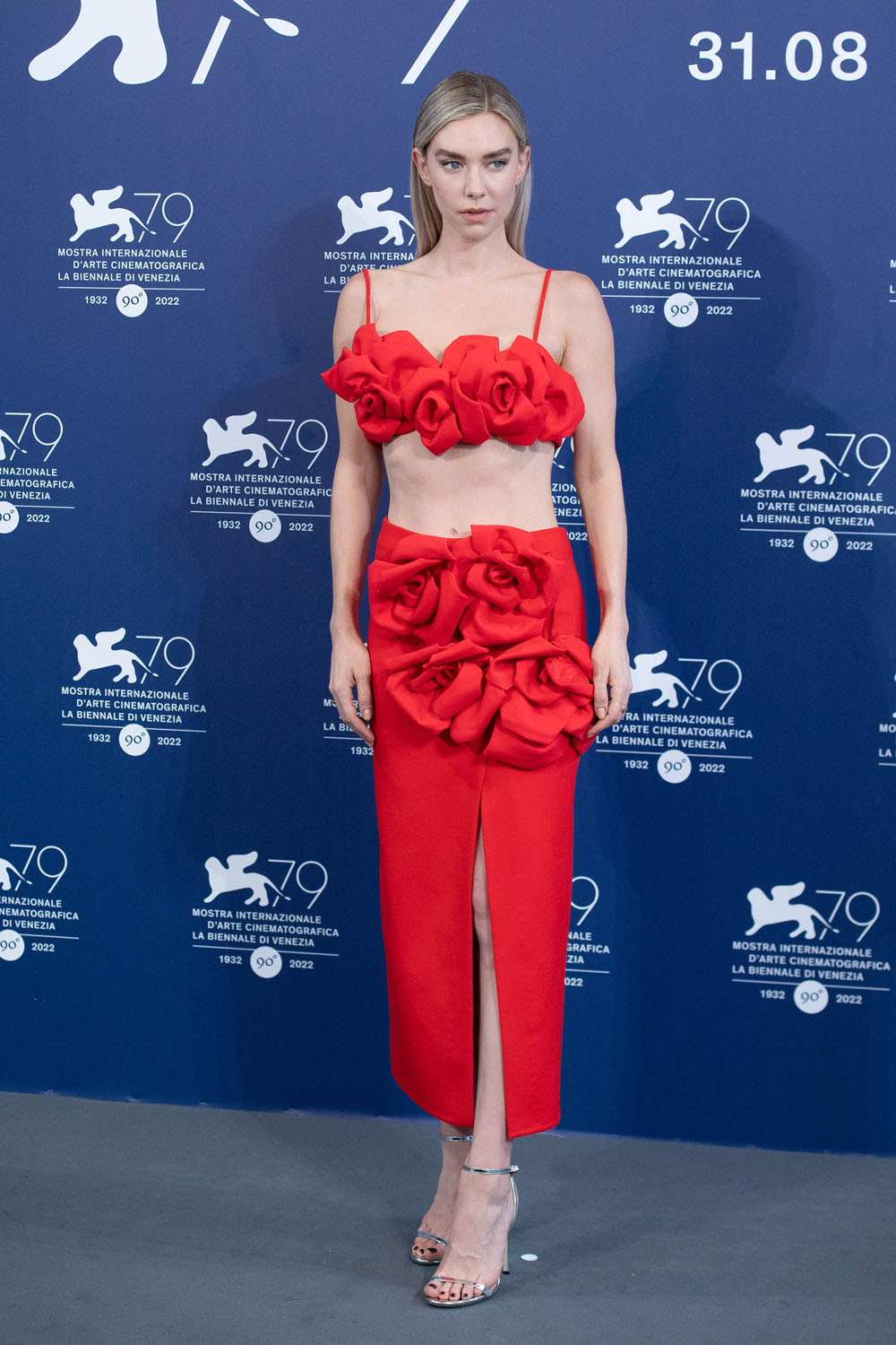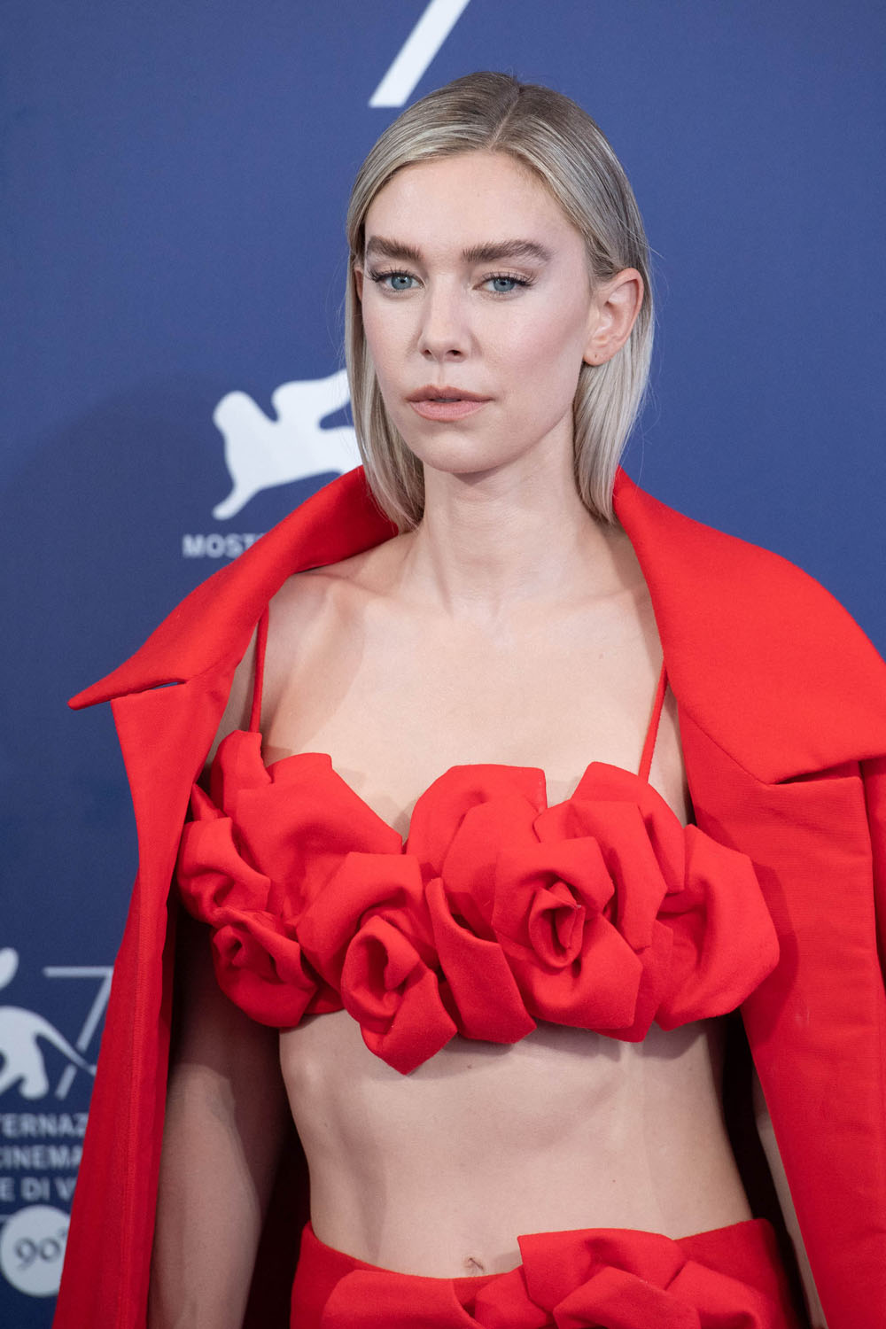 On that note, here’s Vanessa Kirby in Valentino, classic Valentino red. The reason it’s my look of the week is because she’s at the festival for The Son, and there are several official engagements when you’re presenting a film, so you have to consider your wardrobe selections and match them to the moment – and she decided that her bra top, pencil skirt, and jacket would be for the… photo call.