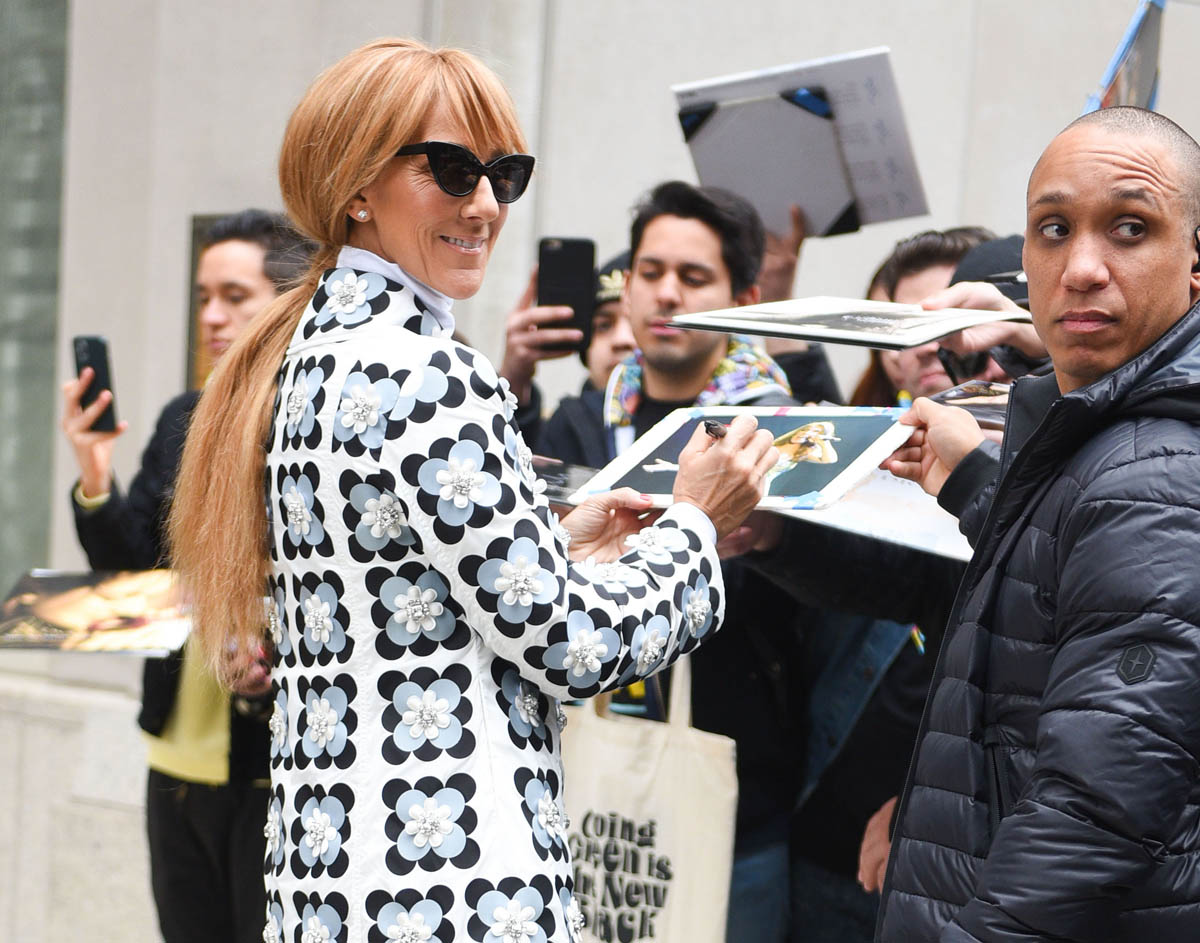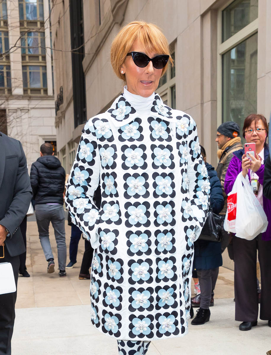 While that’s still three months away, though, this week Celine’s been performing in the New York area and she knows we’ve needed her, since it’s been so dull. So she’s been serving us one look after another, with hair extensions and wigs, and of course, beaucoup de Face. Celine Fashion Face is one of our planet’s greatest natural resources; it gives energy to every demographic – people mature and young, no matter the gender, no matter the class, no matter the race… do you know how rare this is? A celebrity who appeals to everyone? There is no one who has ever existed who would skip over this video, NO ONE. In fact, most of us have to watch it at least three times: