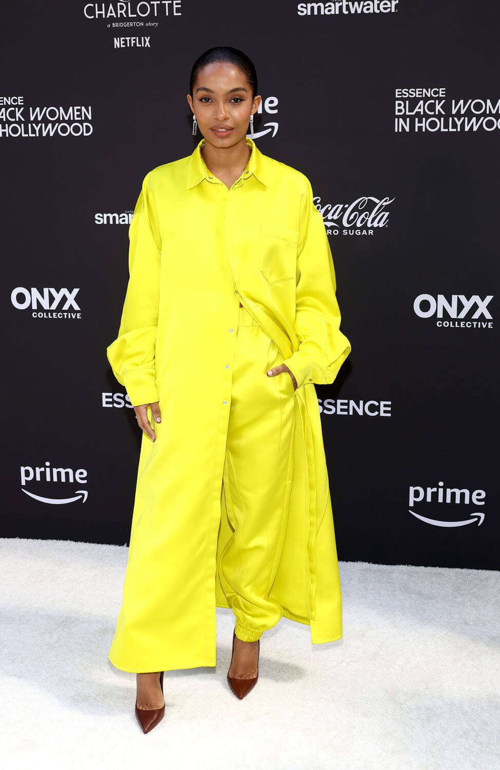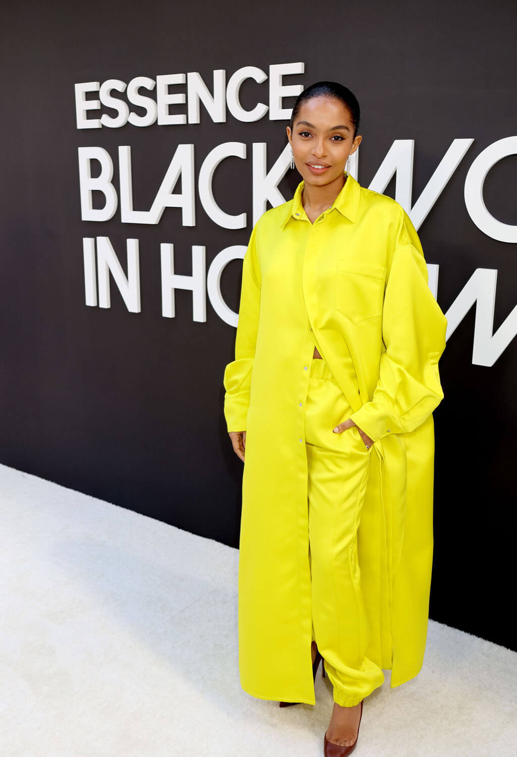 Other style highlights at the ESSENCE party – one of my favourites, Yara Shahidi, in yellow. This set is basically a pair of joggers under a long shirt jacket. It’s amazing.