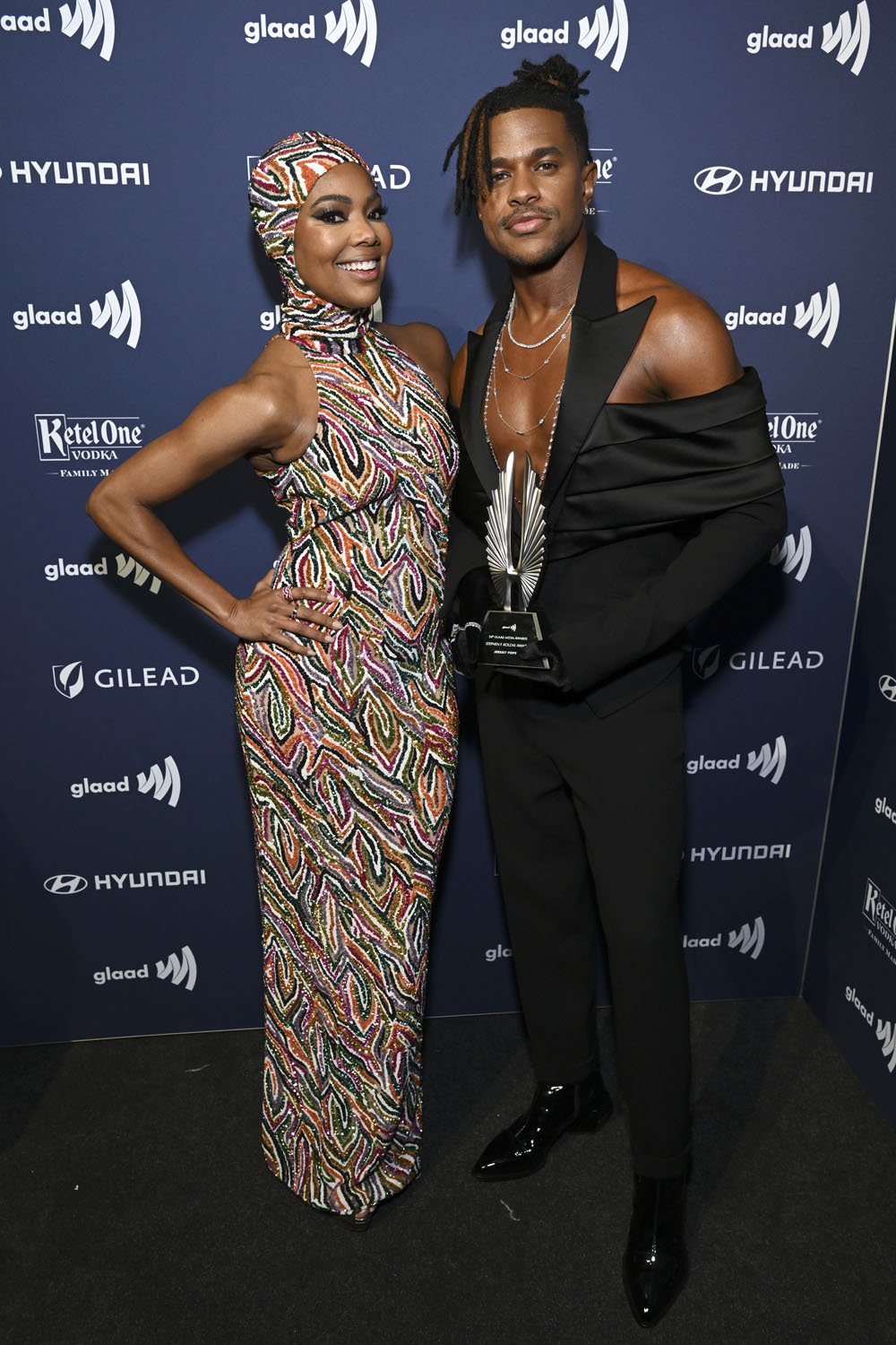 The GLAAD Media Awards, hosted by Margaret Cho, took place last night at the Beverly Hilton where Bros, A League of Their Own, and What We Do In The Shadows took top honours. The Inspection also won the award for Outstanding Film – Limited Release, and both of its stars, Jeremy Pope and Gabrielle Union, were at the event. It was Gabrielle who presented Jeremy with the Stephen K. Kolzak Award which every year recognises a “LGBTQ media professional who has made a significant difference in promoting LGBTQ acceptance”. Previous recipients of this award include Michaela Jae Rodriguez, Janet Mock, Ellen DeGeneres, Laverne Cox, Sean Hayes, Jim Parsons, Wanda Sykes, Troye Sivan, Martina Navratilova, and more.