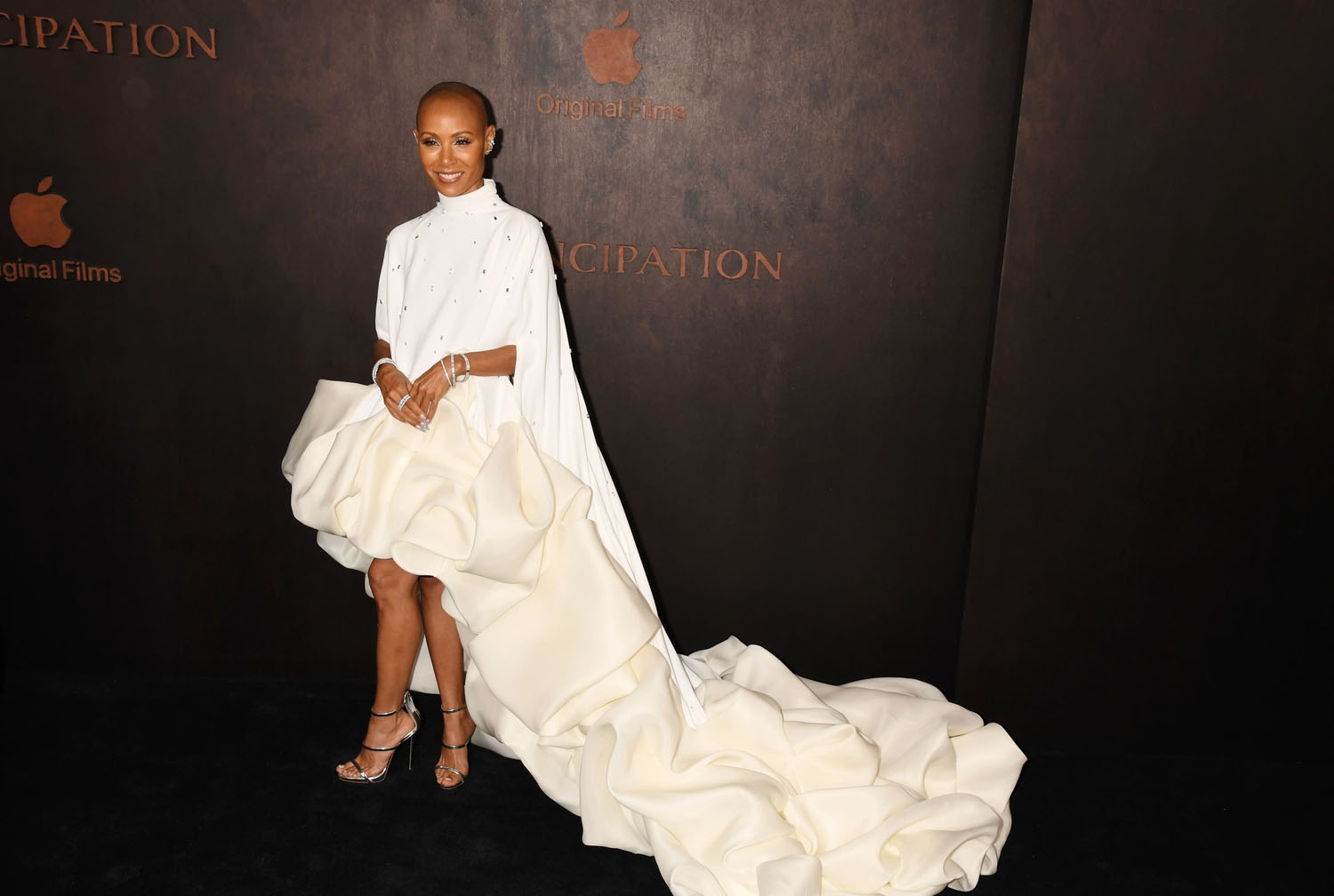 So it’s been almost nine months, but Jada’s style streak continues. She made her first red carpet appearance since the Oscars this week alongside her family at the Emancipation premiere and …I mean… this dress is unreal.