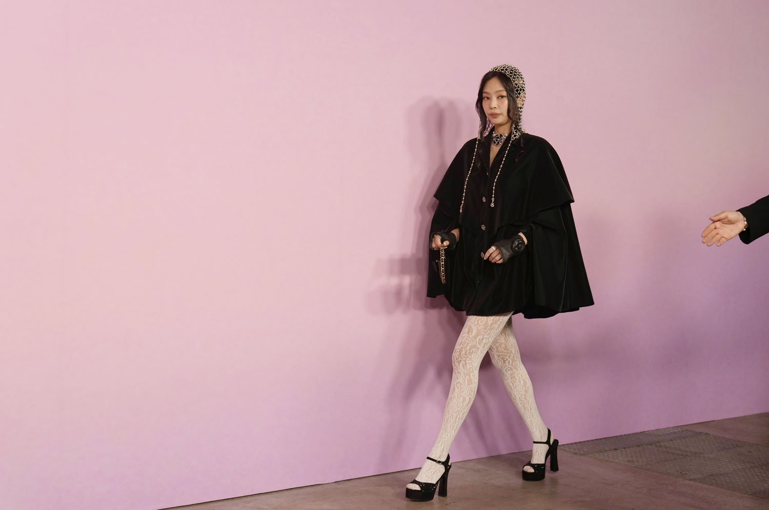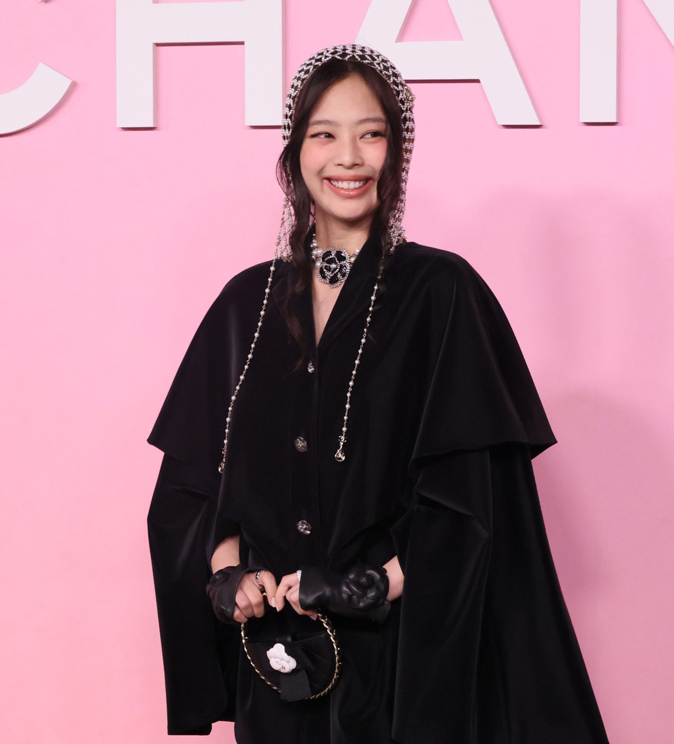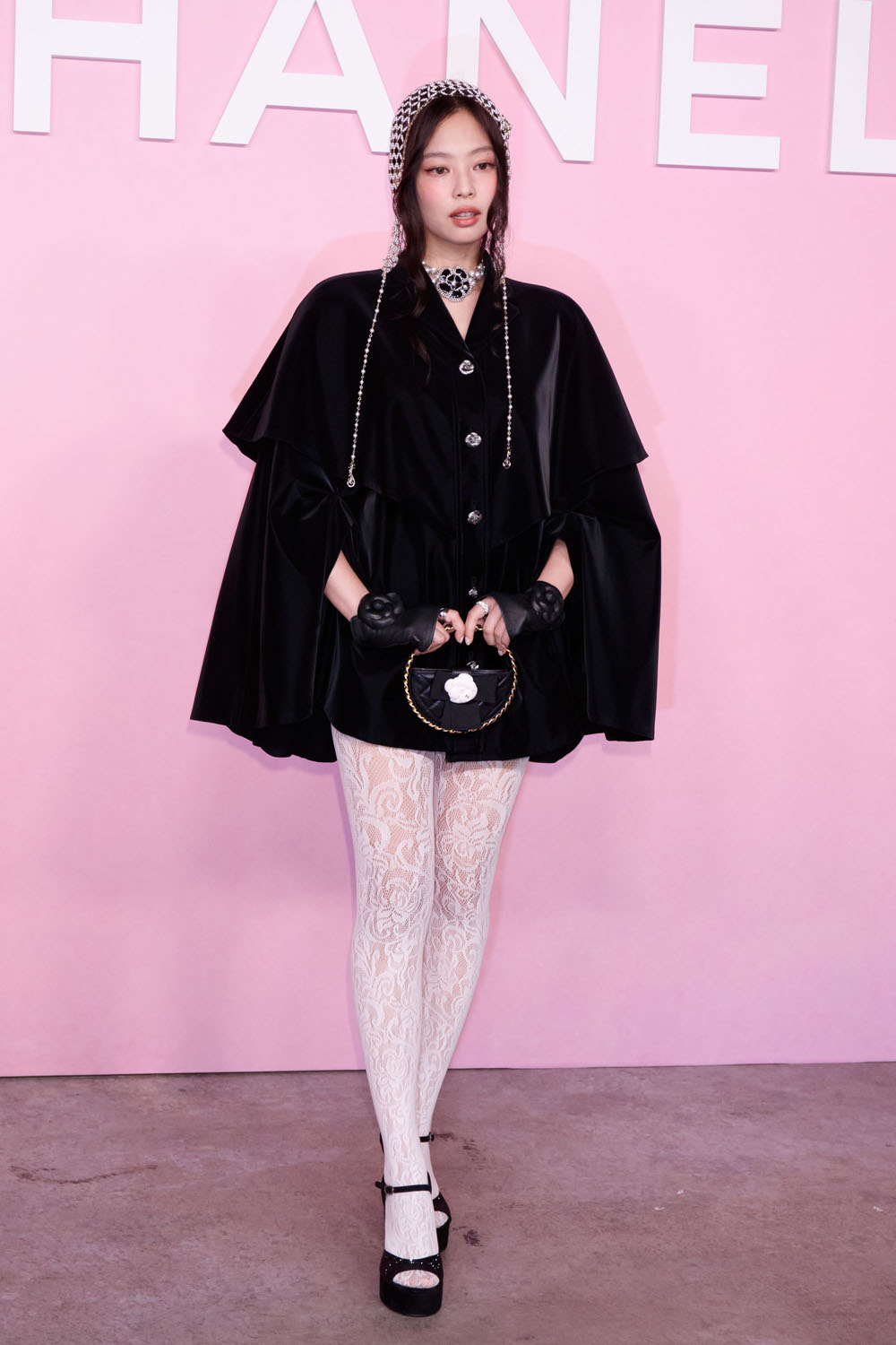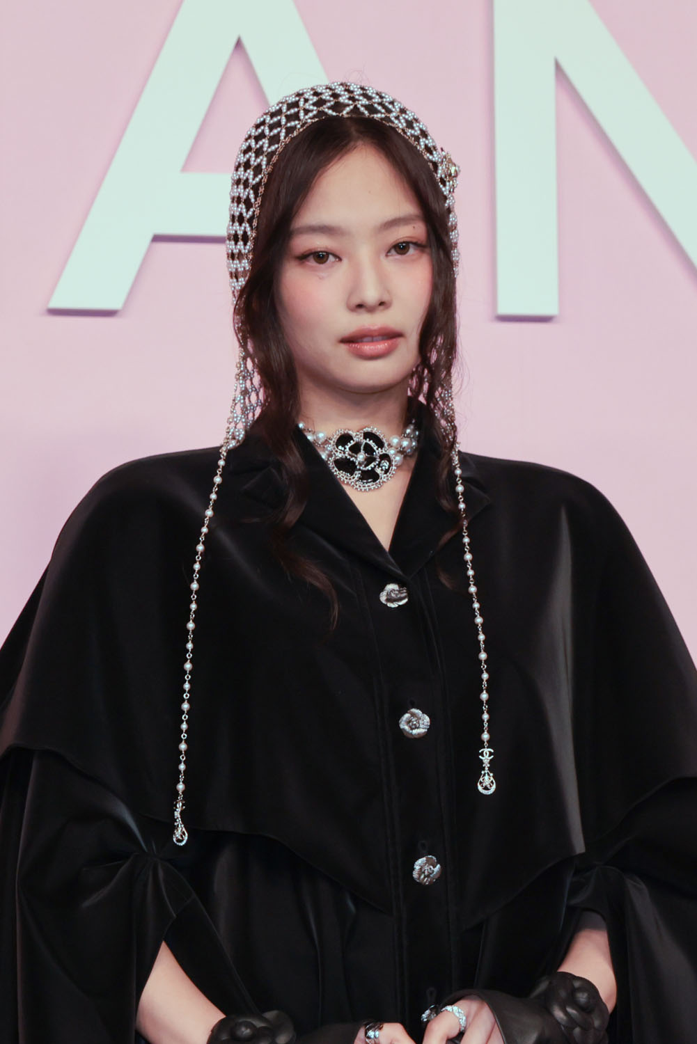 Jennie was in Tokyo this week for the Chanel Metiers D’Art presentation where she also performed a three-song set so we have two looks to appreciate. The first one is exquisite. This cape! With the chain bonnet! I am obsessed.