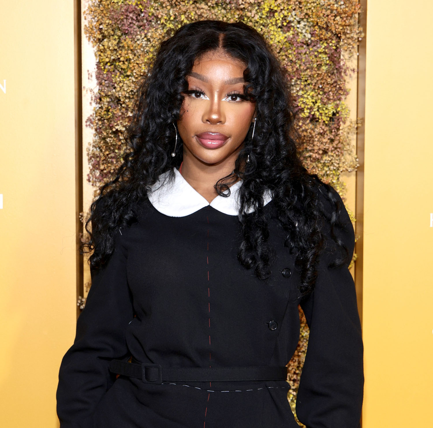 SZA was also in black and white at the event and the styling here is excellent. A white collar LBD, also classic but with contemporary touches, like the exposed threads and the open thigh, but what takes her look over the top are the white ruffle socks over the black pumps. It’s playful and on trend and so well suited to who she is: a pop star, one of the biggest pop stars of the year.
